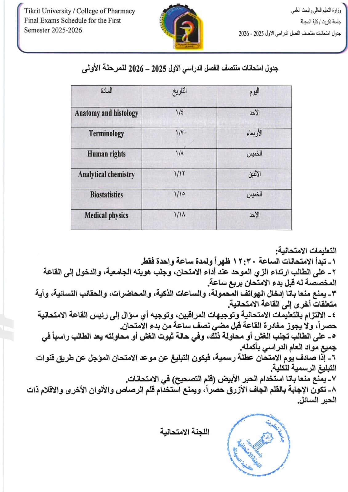 انطلقت صباح اليوم الاثنين الموافق 2025/12/15 في كلية الصيدلة – جامعة تكريت، أعمال الدورة العلمية...