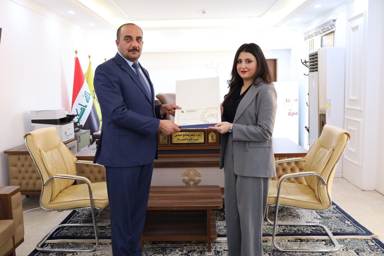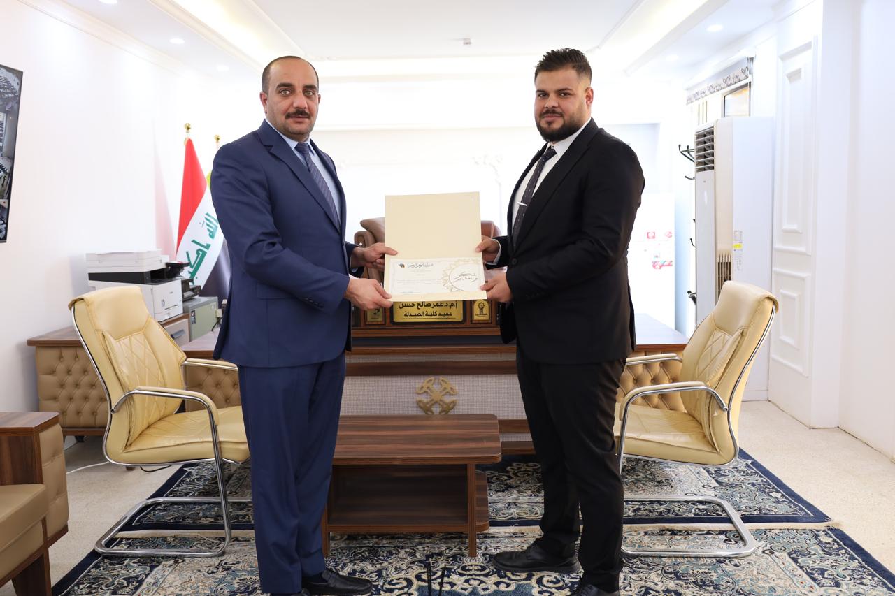 وفي ختام أعمال المؤتمر، كرم عميد كلية الصيدلة الأستاذ المساعد الدكتور عمر صالح حسن الطلبة الذين ناقشوا بحوثهم خلال هذا اليوم، تثميناً لجهودهم العلمية وتشجيعاً لهم على مواصلة مسيرتهم الأكاديمية والبحثية، متمنياً لهم دوام التوفيق والنجاح في خدمة المسيرة العلمية.
