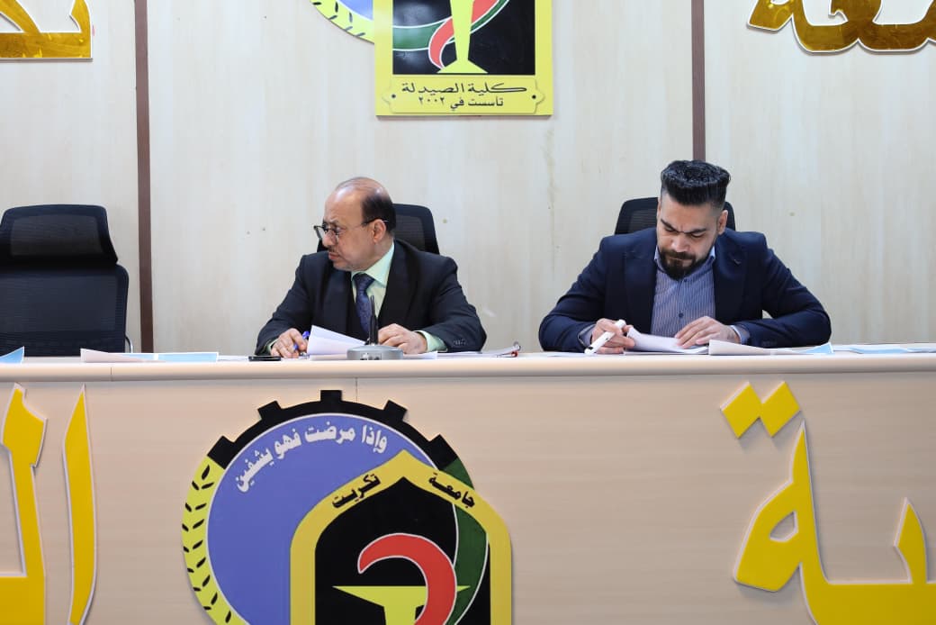 برعاية السيد رئيس جامعة تكريت الأستاذ الدكتور وعد محمود رؤوف المحترم، وبإشراف الأستاذ المساعد الدكتور عمر صالح حسن عميد كلية الصيدلة، أقامت كلية الصيدلة في جامعة تكريت، اليوم الثلاثاء الموافق 2026/3/10، مؤتمرها العلمي السابع عشر لمناقشة مشاريع بحوث التخرج لطلبة المرحلة الخامسة للعام الدراسي 2025–2026، وذلك تحت شعار "عقول شابة… أبحاث واعدة".