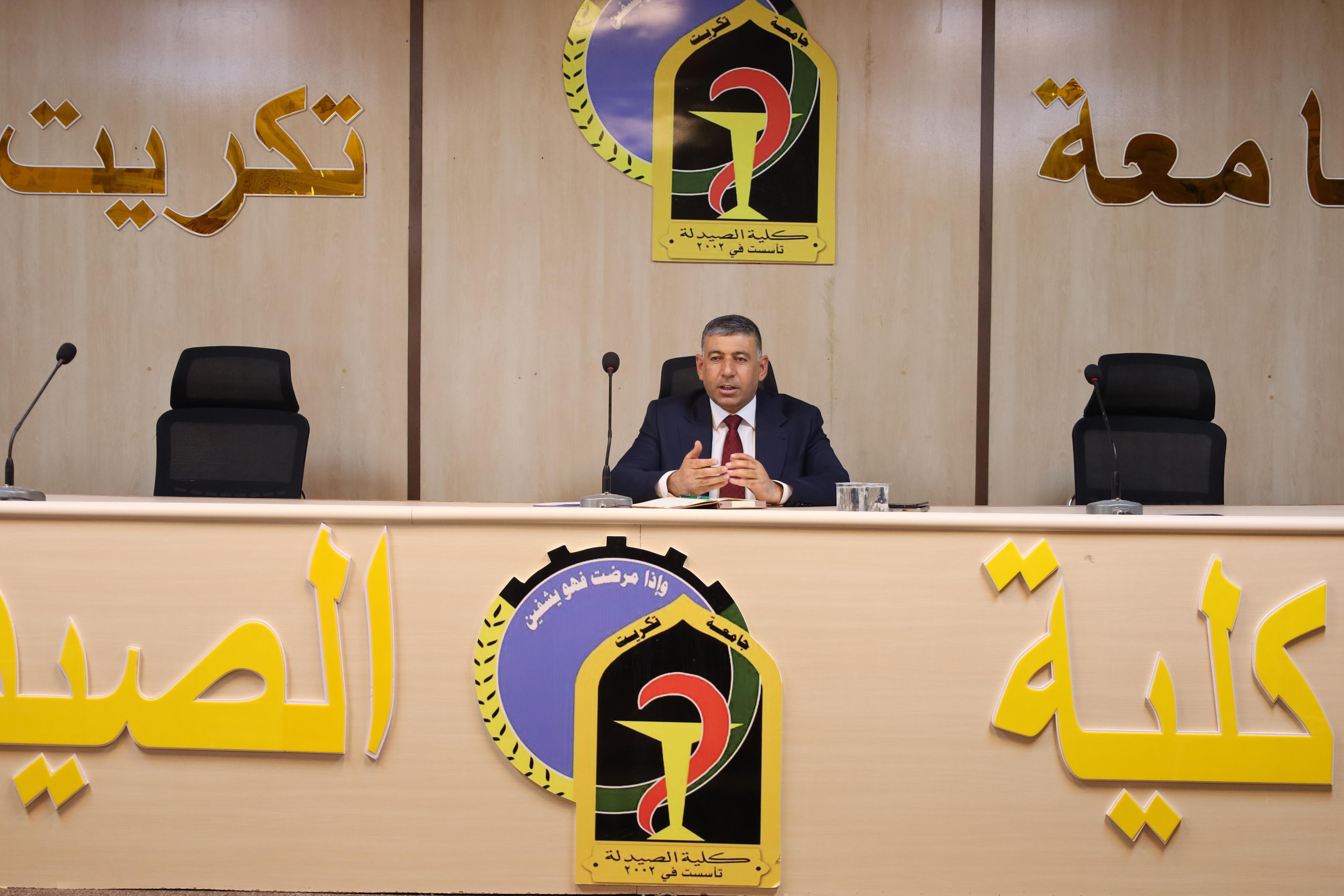 استضافت كلية الصيدلة في جامعة تكريت، صباح يوم الثلاثاء الموافق 9 / 12 / 2025، اجتماع معاوني عمداء الكليات للشؤون الإدارية، برئاسة السيد مساعد رئيس الجامعة للشؤون الإدارية الأستاذ الدكتور حامد محمد صالح، وذلك على قاعة السمنر في الكلية.