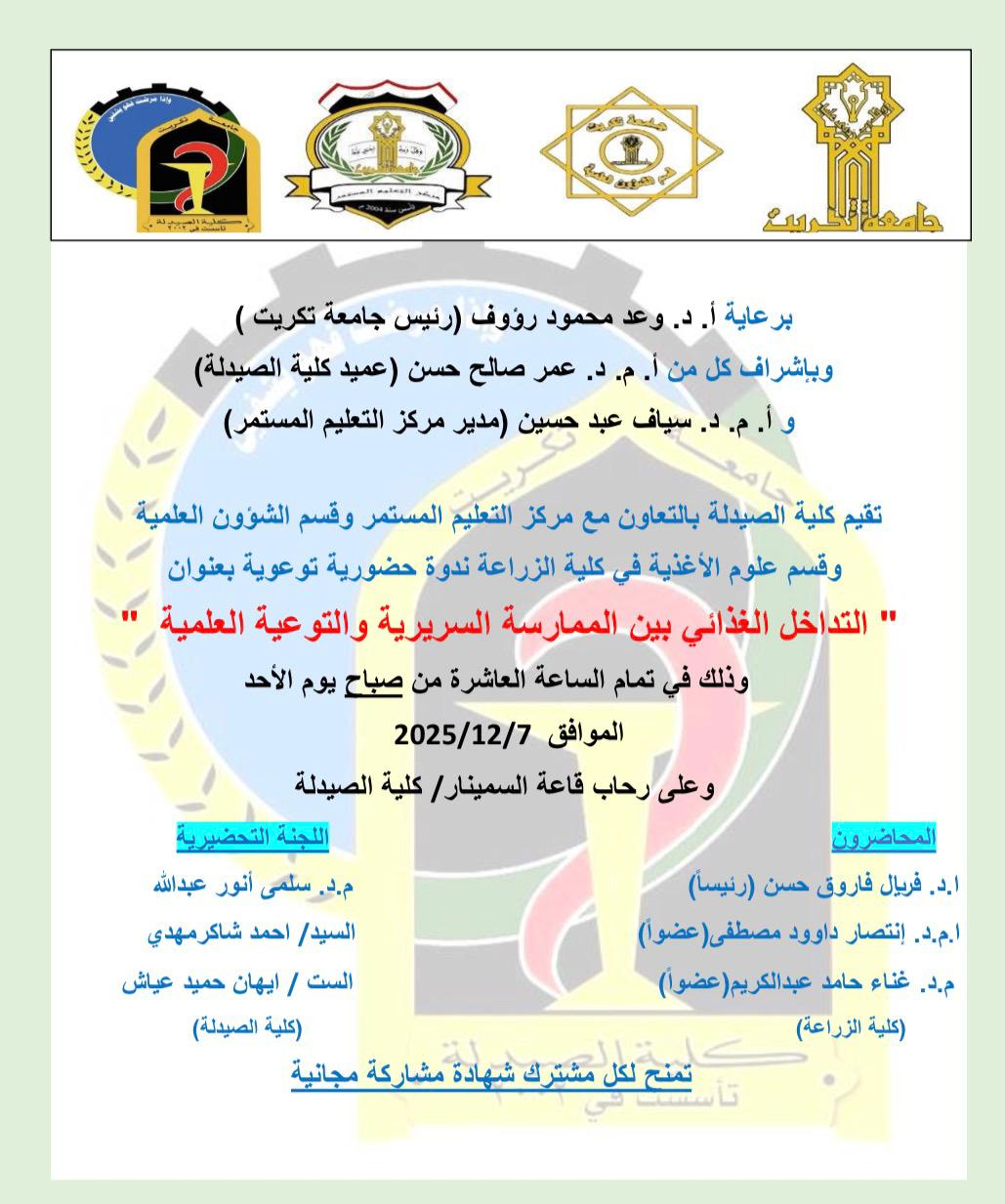 ندوة بعنوان "التداخل الغذائي بين الممارسة السريرية والتوعوية العلمية"
