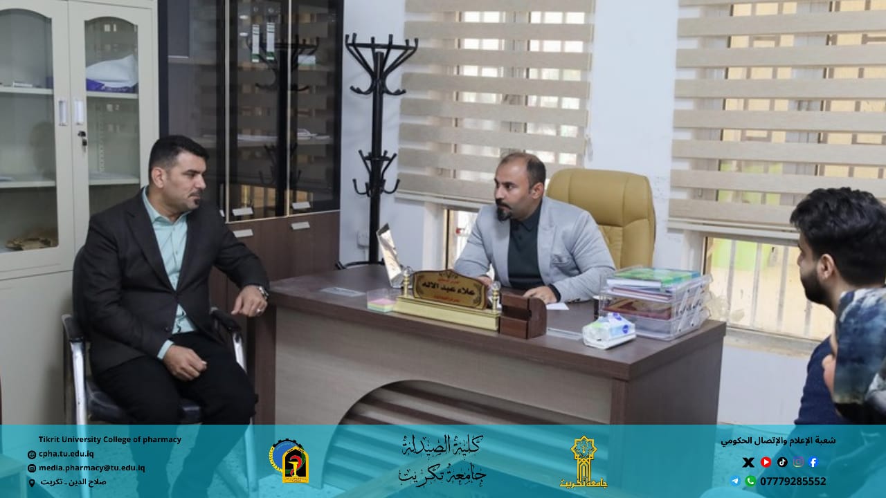 عقد فرع الصيدلانيات في كلية الصيدلة بجامعة تكريت، اليوم الخميس الموافق 18/12/2025، اجتماعاً موسعاً مع الكادر التدريسي في الفرع، برئاسة م. د. علاء عبدالإله عبدالقادر رئيس فرع الصيدلانيات، وذلك في إطار متابعة سير العملية التعليمية والاستعدادات الخاصة بالفصل الدراسي الأول.