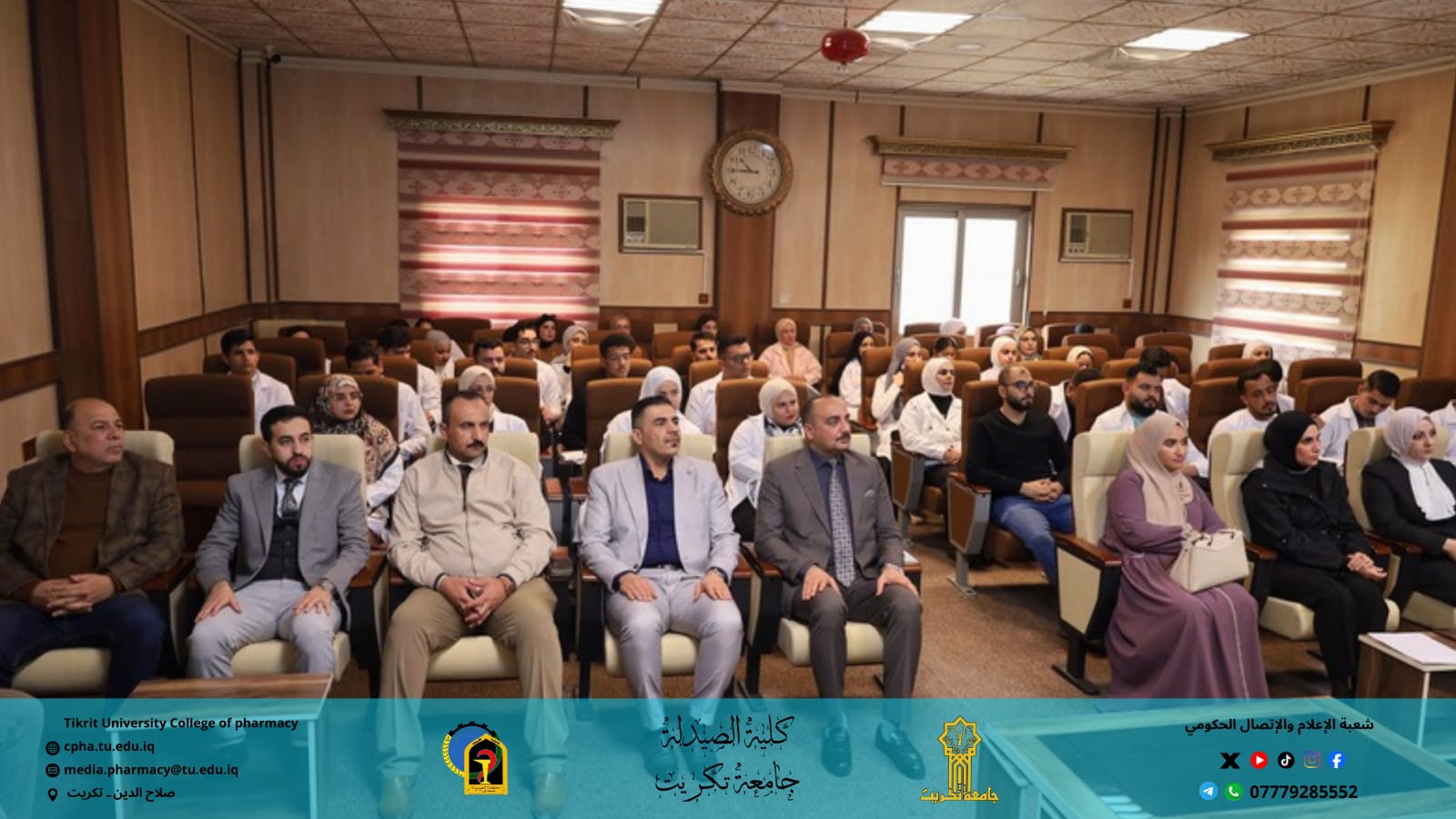 برعاية الأستاذ الدكتور وعد محمود رؤوف رئيس جامعة تكريت، وبإشراف الأستاذ المساعد الدكتور عمر صالح حسن عميد كلية الصيدلة، والأستاذ المساعد الدكتور سياف عبد حسين مدير مركز التعليم المستمر، نظمت كلية الصيدلة بالتعاون مع مركز التعليم المستمر وقسم الشؤون العلمية وقسم علوم الأغذية في كلية الزراعة ندوة حضورية توعوية بعنوان: "التداخل الغذائي بين الممارسة السريرية والتوعية العلمية"، وذلك يوم الأحد الموافق 7 / 12 / 2025 على قاعة السمنر في كلية الصيدلة.