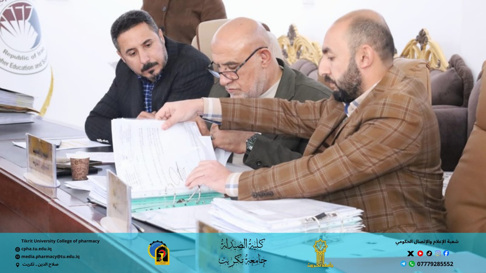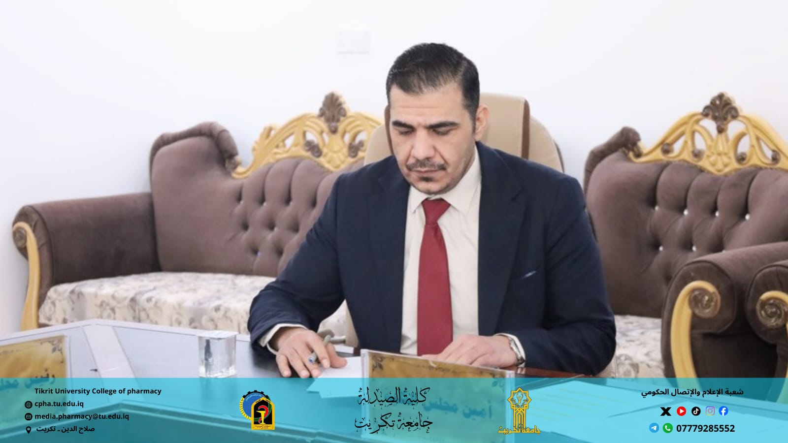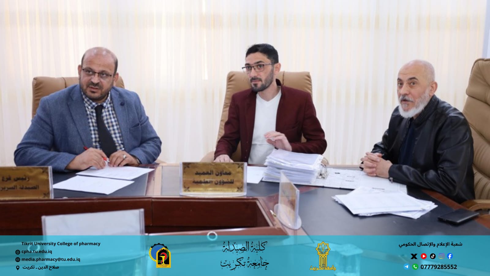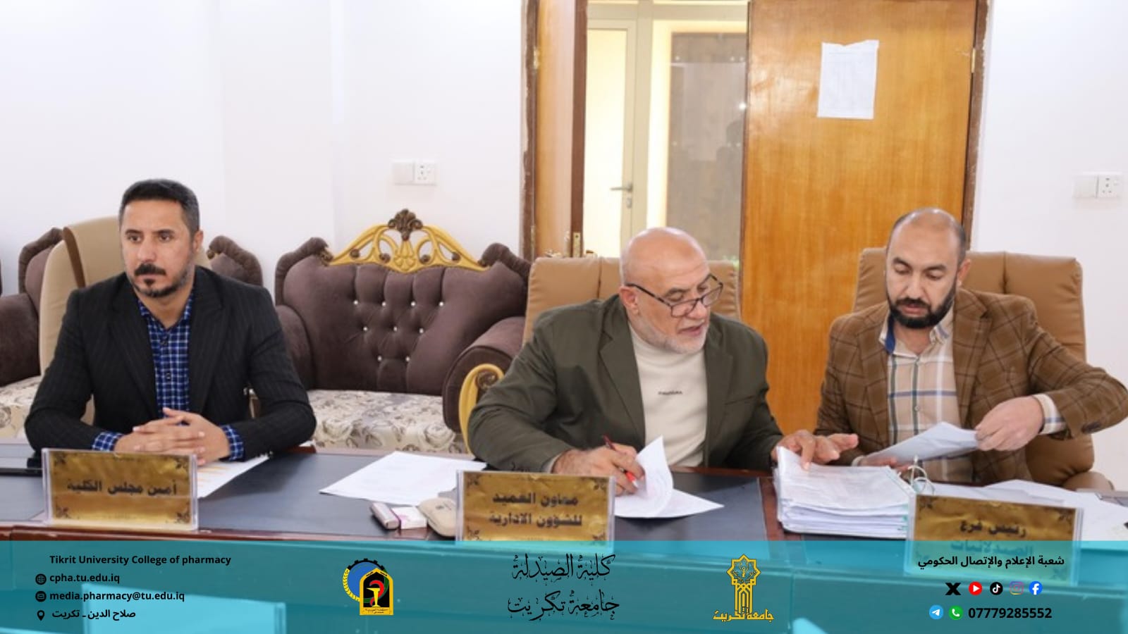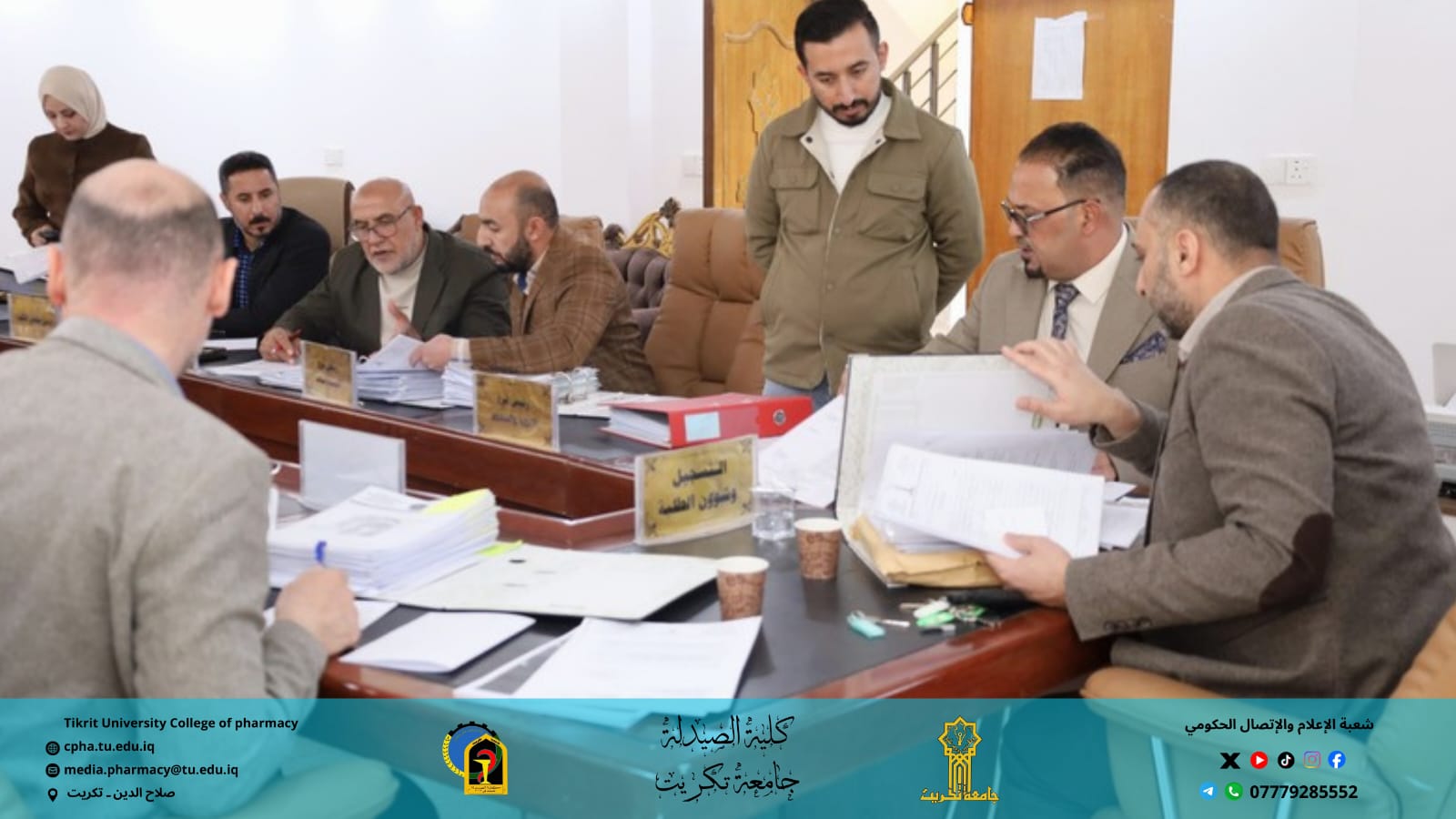 استقبلت كلية الصيدلة اليوم الأربعاء الموافق 3 / 12 / 2025 اللجنة المركزية لتدقيق متطلبات الاعتماد المؤسسي لجامعة تكريت، وذلك بحضور الأستاذ المساعد الدكتور عمر صالح حسن عميد كلية الصيدلة، والأستاذ المساعد الدكتور عمر حسين أحمد معاون العميد للشؤون العلمية.