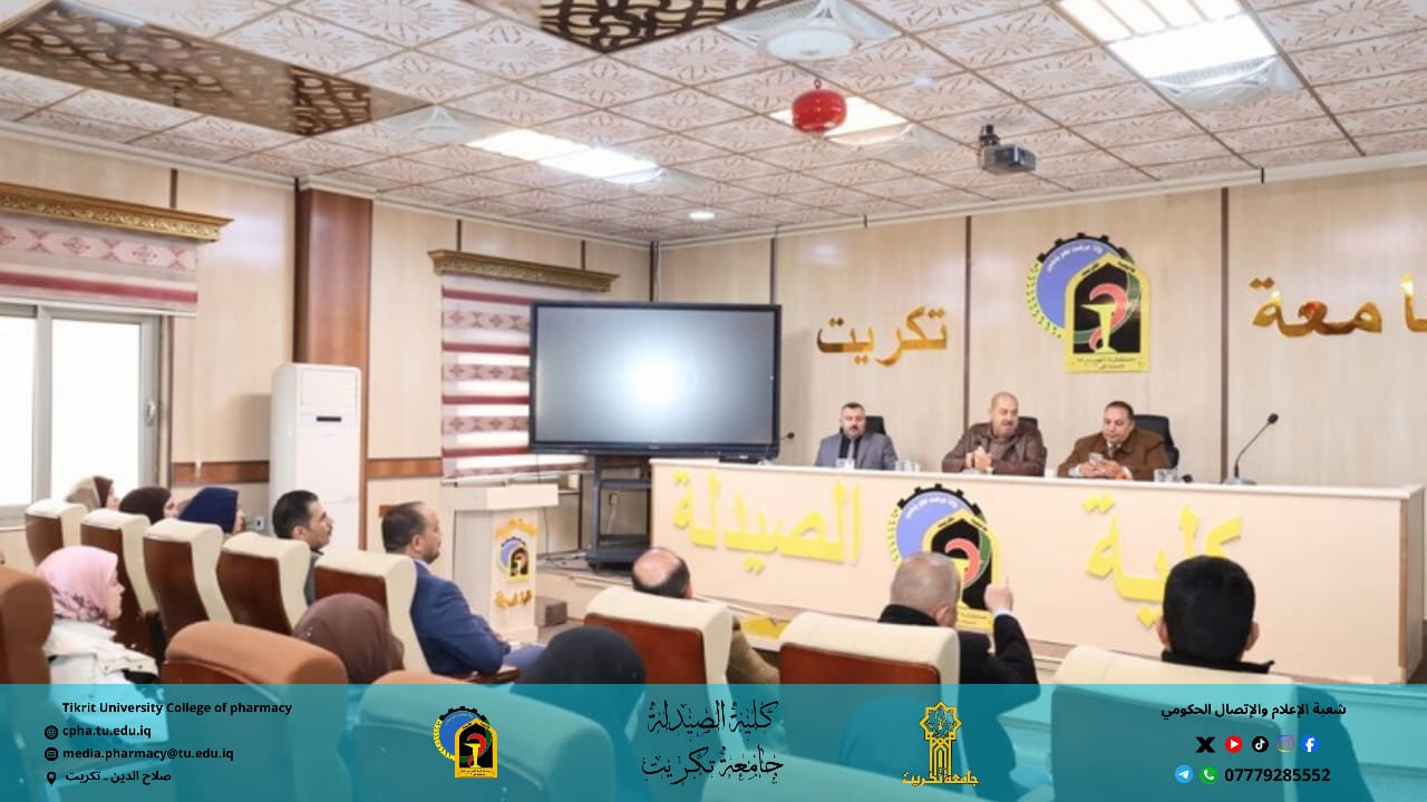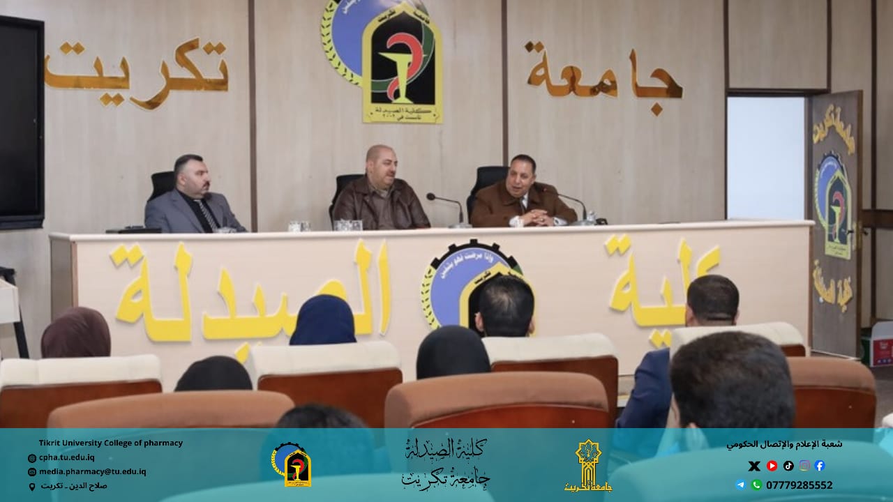 برعاية الأستاذ الدكتور وعد محمود رؤوف رئيس جامعة تكريت، وبإشراف الأستاذ المساعد الدكتور عمر صالح حسن عميد كلية الصيدلة، والأستاذ المساعد الدكتور سياف عبد حسين مدير مركز التعليم المستمر، نظمت كلية الصيدلة ندوة توعوية حضورية بعنوان “مكافحة الإرهاب والتطرف الفكري وتعزيز السلم المجتمعي”.