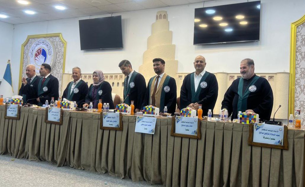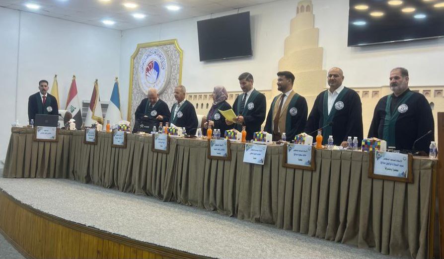 وقد أُجريت المناقشة في تمام الساعة التاسعة من صباح يوم الاثنين الموافق 2025/7/21، على قاعة كلية التربية في جامعة سامراء.