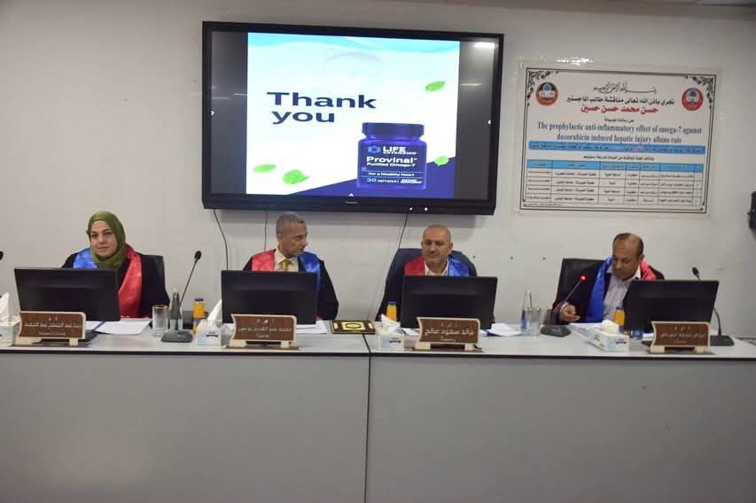 وقد أجريت المناقشة في تمام الساعة التاسعة من صباح يوم الاثنين الموافق 2025/9/1، على قاعة ابن البيطار بكلية الصيدلة / جامعة الموصل.