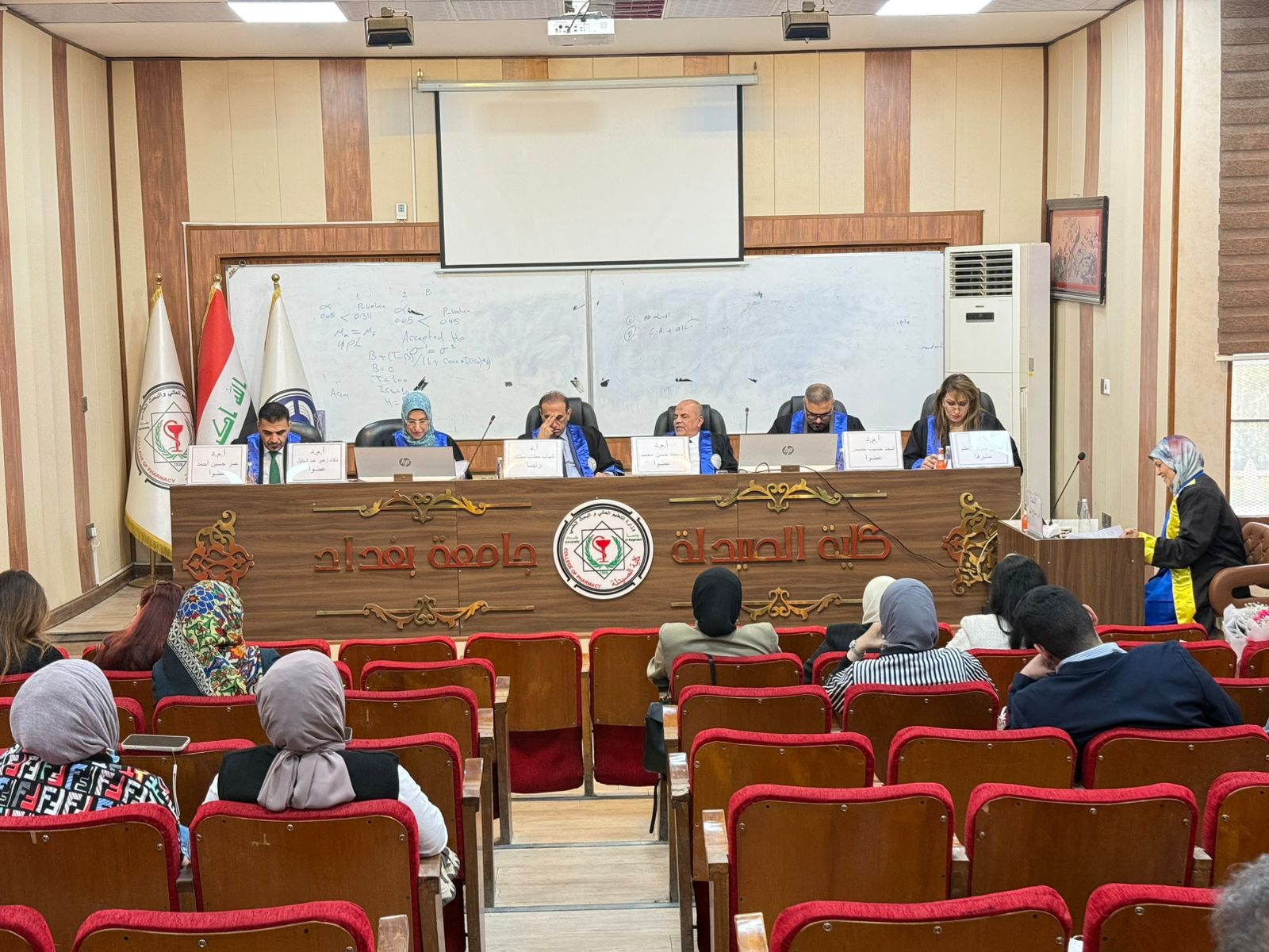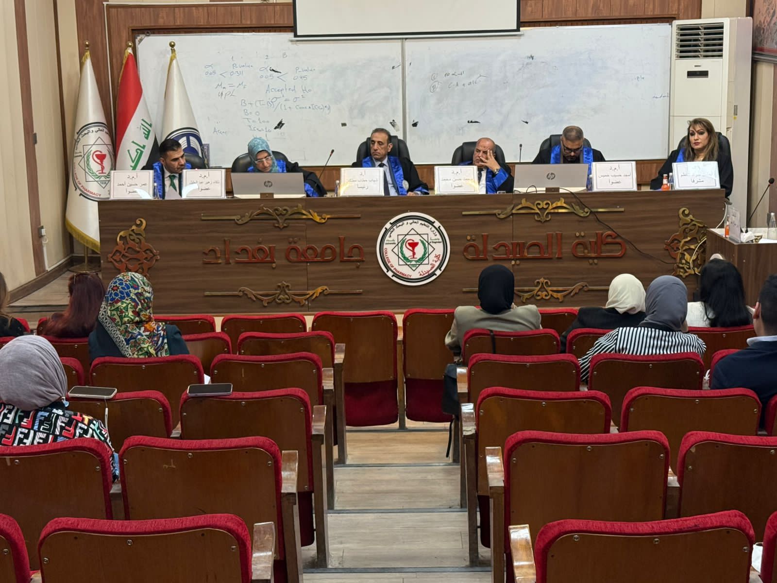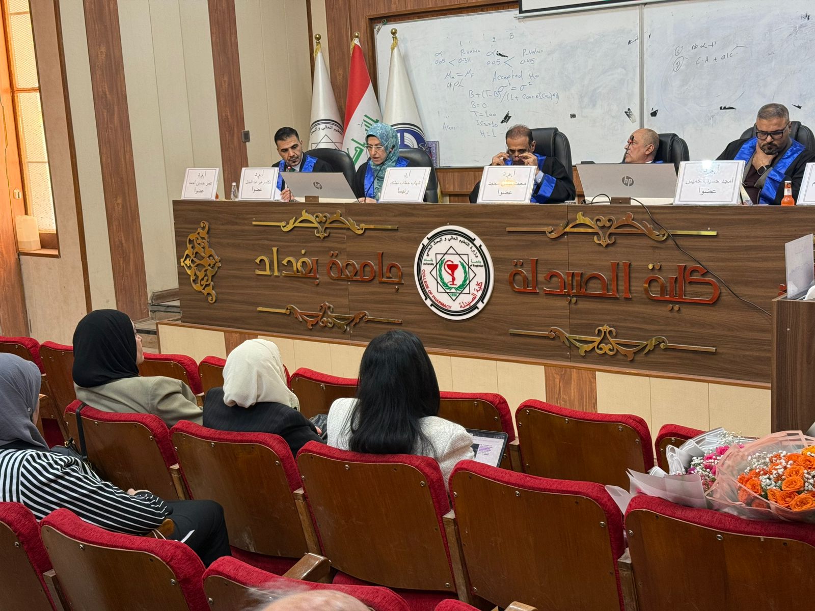 وقد أجريت المناقشة في تمام الساعة التاسعة من صباح يوم الأحد الموافق 2025/11/16، على قاعة الأنطاكي في كلية الصيدلة جامعة بغداد.