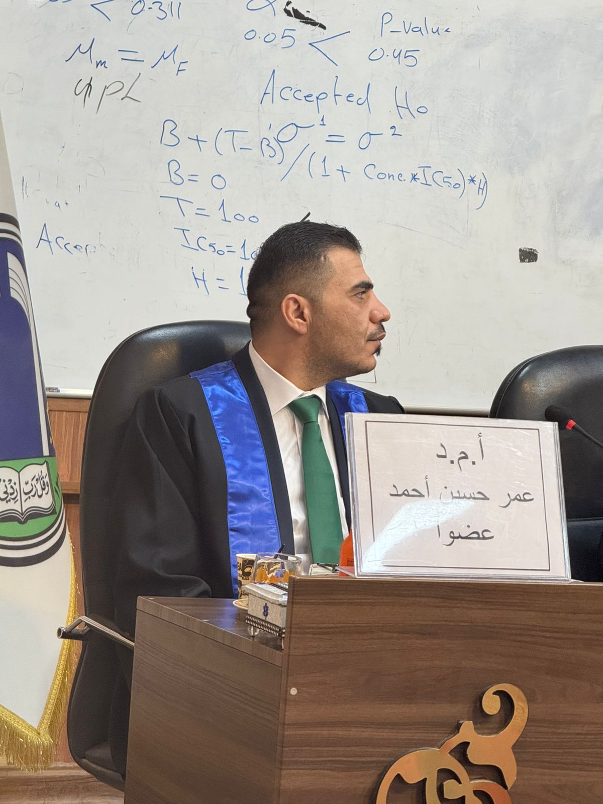 شارك الأستاذ المساعد الدكتور عمر حسين أحمد، معاون العميد للشؤون العلمية بكلية الصيدلة – جامعة تكريت، في عضوية لجنة مناقشة أطروحة الدكتوراه الموسومة: