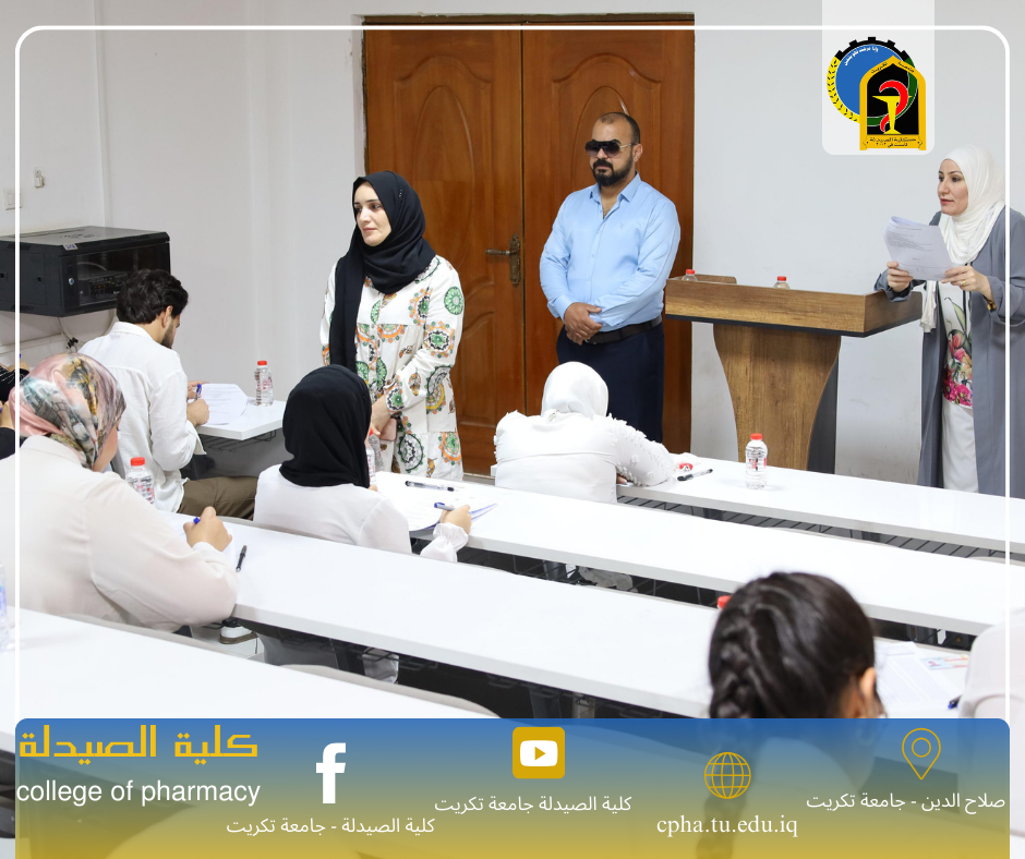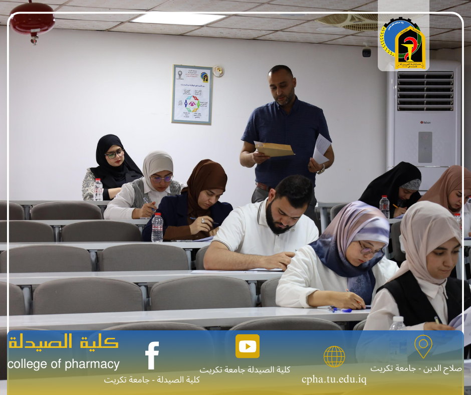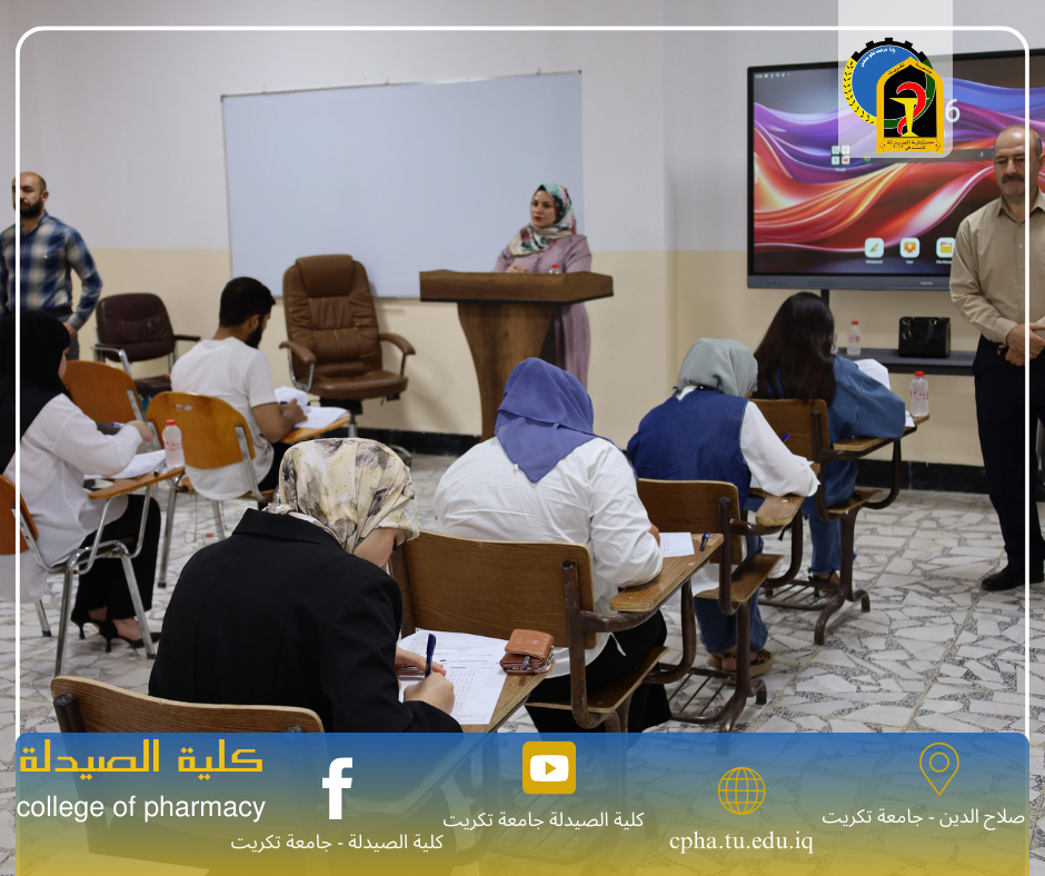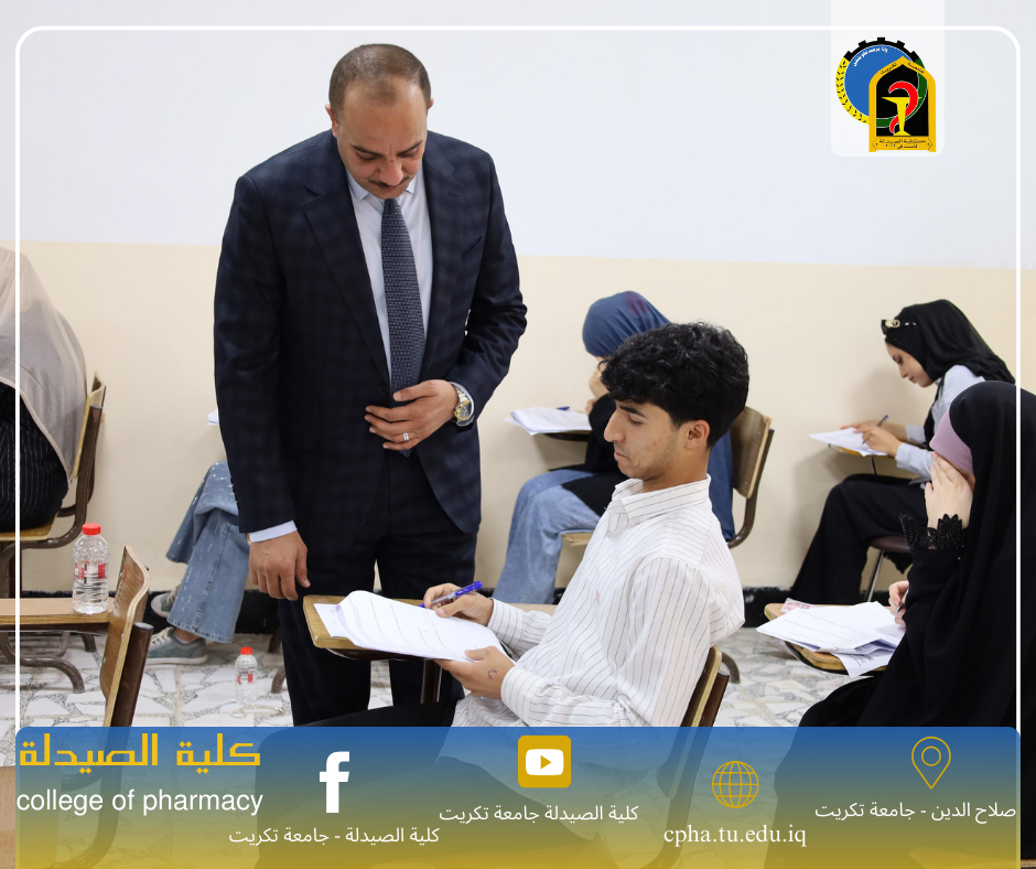 تواصل كلية الصيدلة إجراء الامتحانات التقويمية الوزارية لطلبتها، ضمن أجواء منظمة وتطبيق دقيق للإجراءات الأكاديمية المعتمدة. وشهدت القاعات الامتحانية متابعة مباشرة من عميد الكلية، الذي تفقد سير الامتحانات واطّلع على توفير الأجواء المناسبة لضمان أداء الطلبة بشكل سلس ومنظم.