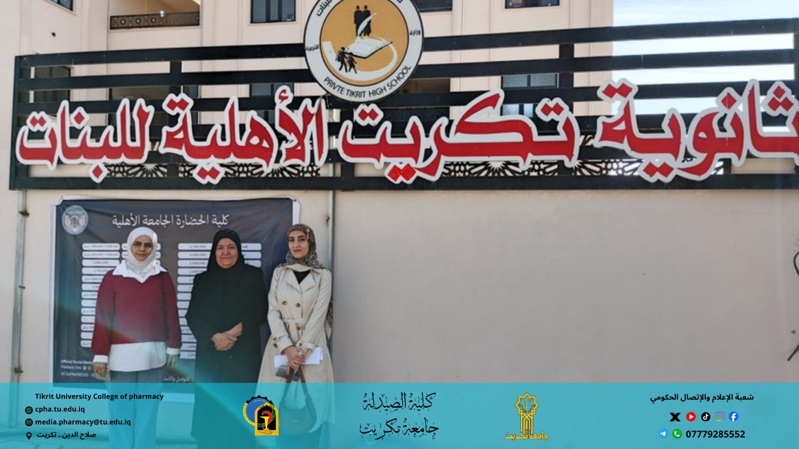 نظمت كلية الصيدلة يوم الثلاثاء الموافق 18 / 11 / 2025 زيارة ميدانية إلى ثانوية تكريت الأهلية للبنات، وذلك ضمن برامجها التوعوية الهادفة إلى تعزيز الوعي الصحي والاجتماعي بين طلبة المجتمع المدرسي.