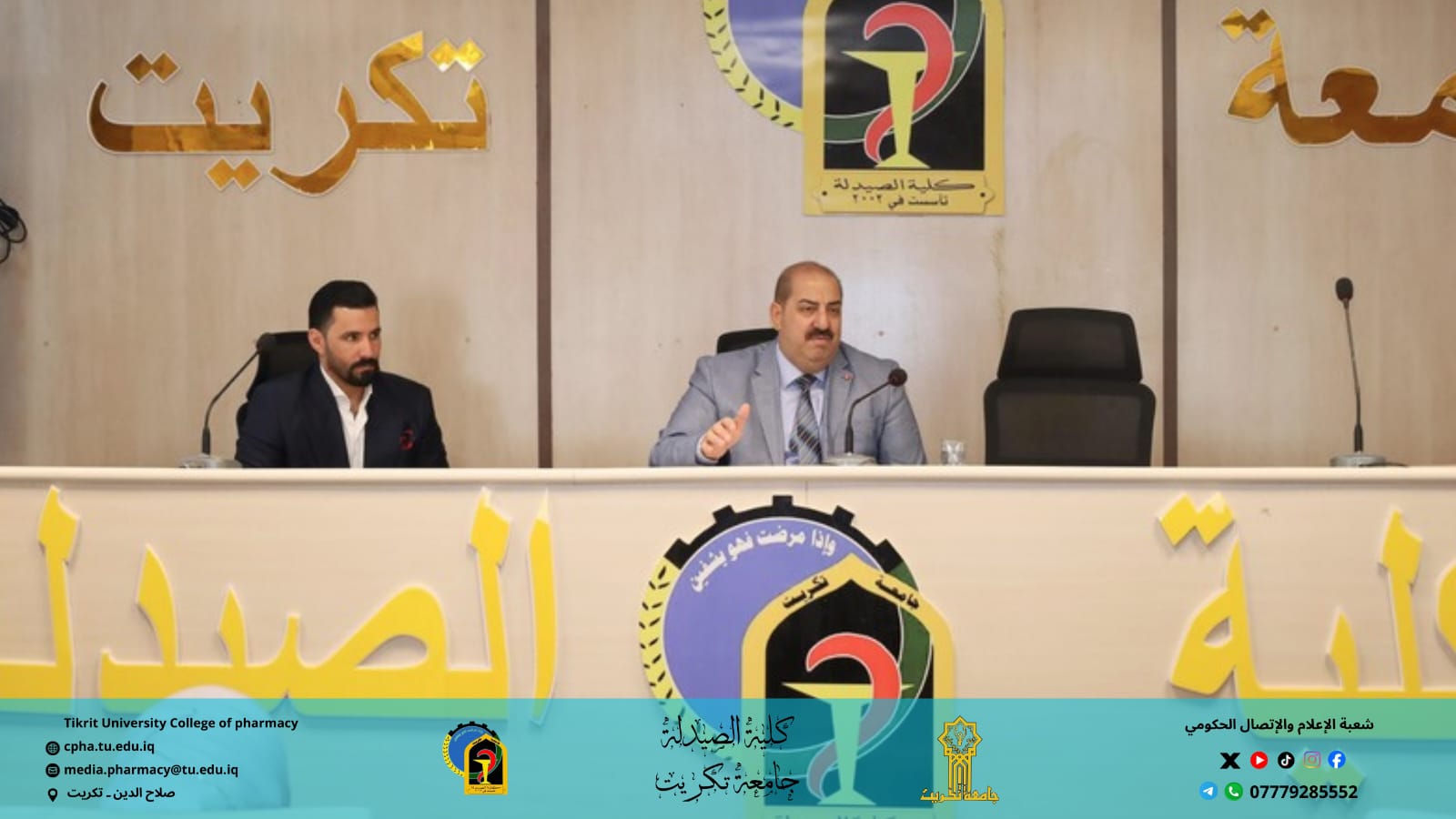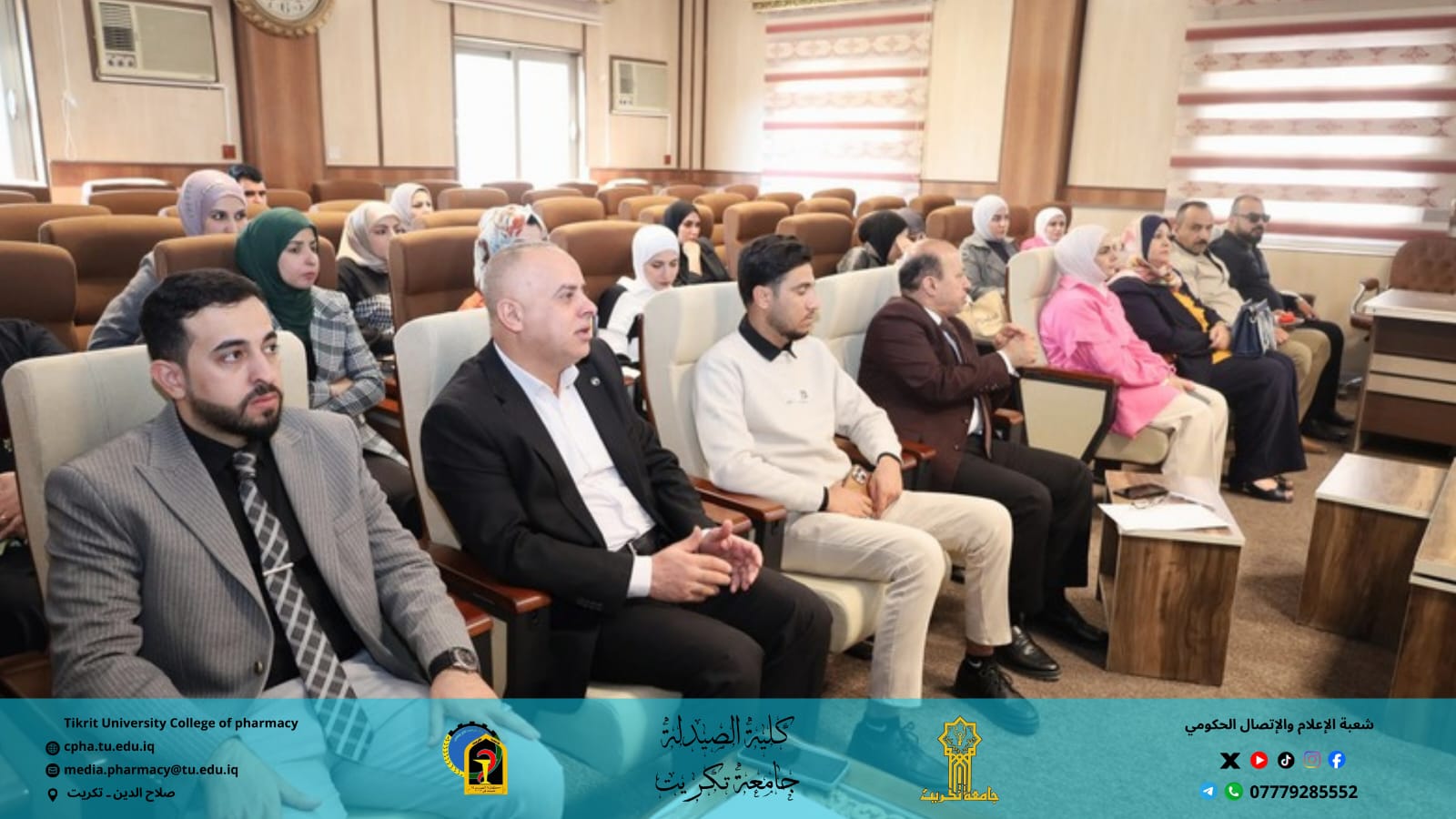 برعاية الأستاذ الدكتور وعد محمود رؤوف رئيس جامعة تكريت، وبإشراف الأستاذ المساعد الدكتور عمر صالح حسن عميد كلية الصيدلة، والأستاذ المساعد الدكتور سياف عبد حسين مدير مركز التعليم المستمر.