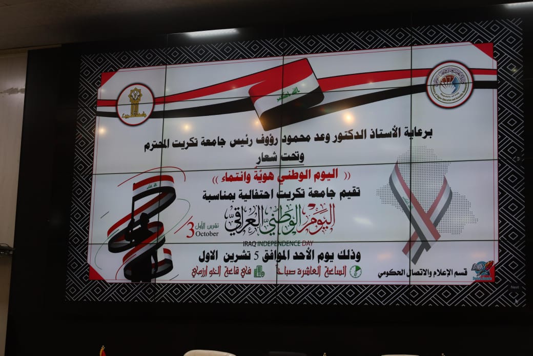 برعاية السيد رئيس جامعة تكريت الأستاذ الدكتور وعد محمود رؤوف المحترم، وتحت شعار “اليوم الوطني هوية وانتماء”، أقامت جامعة تكريت صباح اليوم الأحد احتفالية مركزية بمناسبة اليوم الوطني العراقي على قاعة الخوارزمي في رئاسة الجامعة، بحضور واسع من تدريسيي ومنتسبي وطلبة الجامعة، وعدد من الشخصيات الأكاديمية.