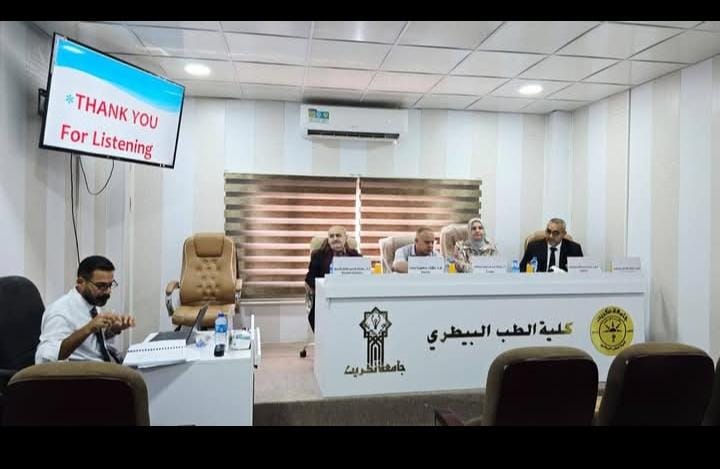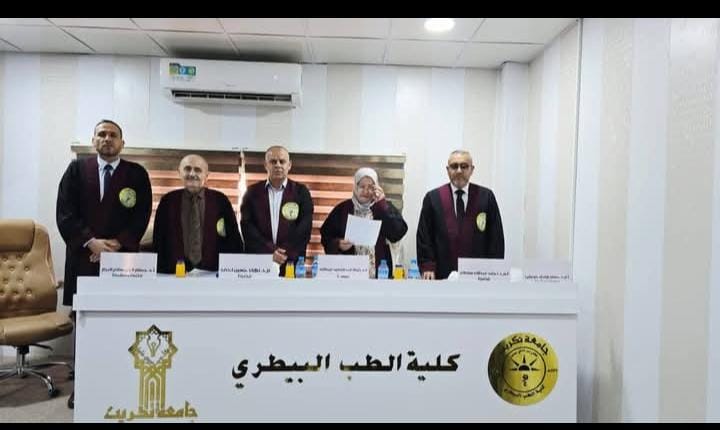 وقد أجريت المناقشة في تمام الساعة التاسعة من صباح يوم الثلاثاء الموافق 2025/8/26، على قاعة (السمنارات) كلية الطب البيطري في جامعة تكريت.