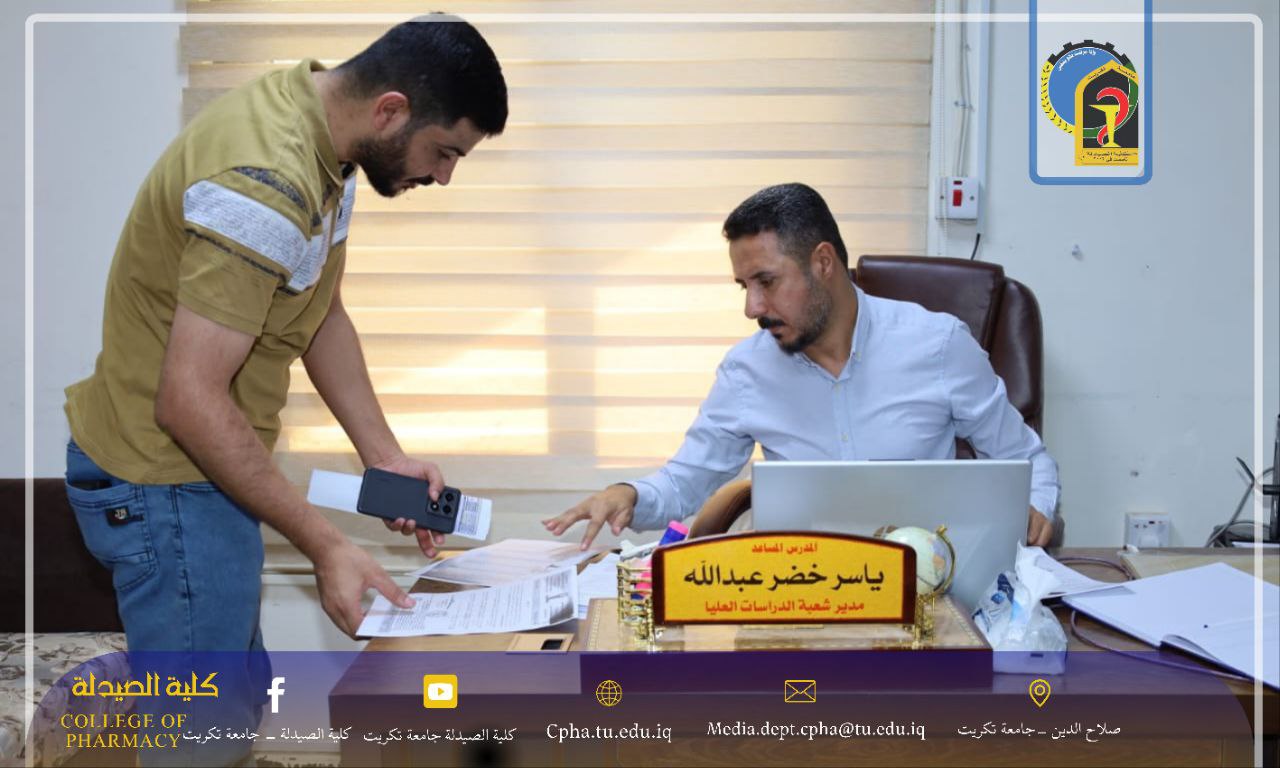باشرت كلية الصيدلة في جامعة تكريت، اليوم الاثنين الموافق ١ أيلول ٢٠٢٥، دوامها الرسمي في جميع الشعب والوحدات الإدارية، إلى جانب الكوادر التدريسية، وذلك تنفيذًا لتوجيهات رئاسة الجامعة وعمادة الكلية بشأن انطلاق العام الدراسي الجديد ٢٠٢٥-٢٠٢٦.