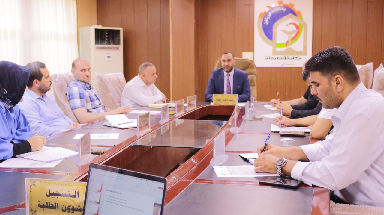 عقد مجلس كلية الصيدلة اليوم جلسته السابعة للعام الدراسي ٢٠٢٣-٢٠٢٤ ببحضور كافة اعضاءه.وقد ناقش المجلس عدة امور تنظيمية وادارية تخص الكلية والعاملين فيها والطلبة.