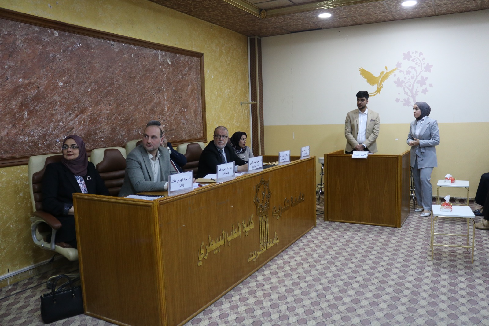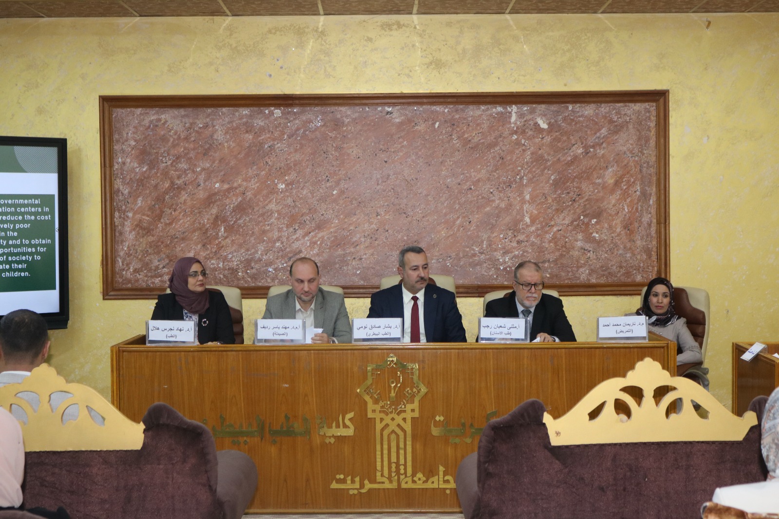 بحضور الاستاذ الدكتور وعد محمود رؤوف رئيس جامعة تكريت، والاستاذ الدكتور حسن حسين ابراهيم مساعد رئيس الجامعة للشؤون العلمية، وعدد من عمداء وتدريسيو كليات جامعة تكريت جرى اليوم مناقشة بحوث تخرج طلبة كليات المجموعة الطبية (كلية الطب، كلية الصيدلة، كلية طب الأسنان، كلية الطب البيطري، كلية التمريض) للبحوث الحاصلة على المركز الأول في تلك الكليات.