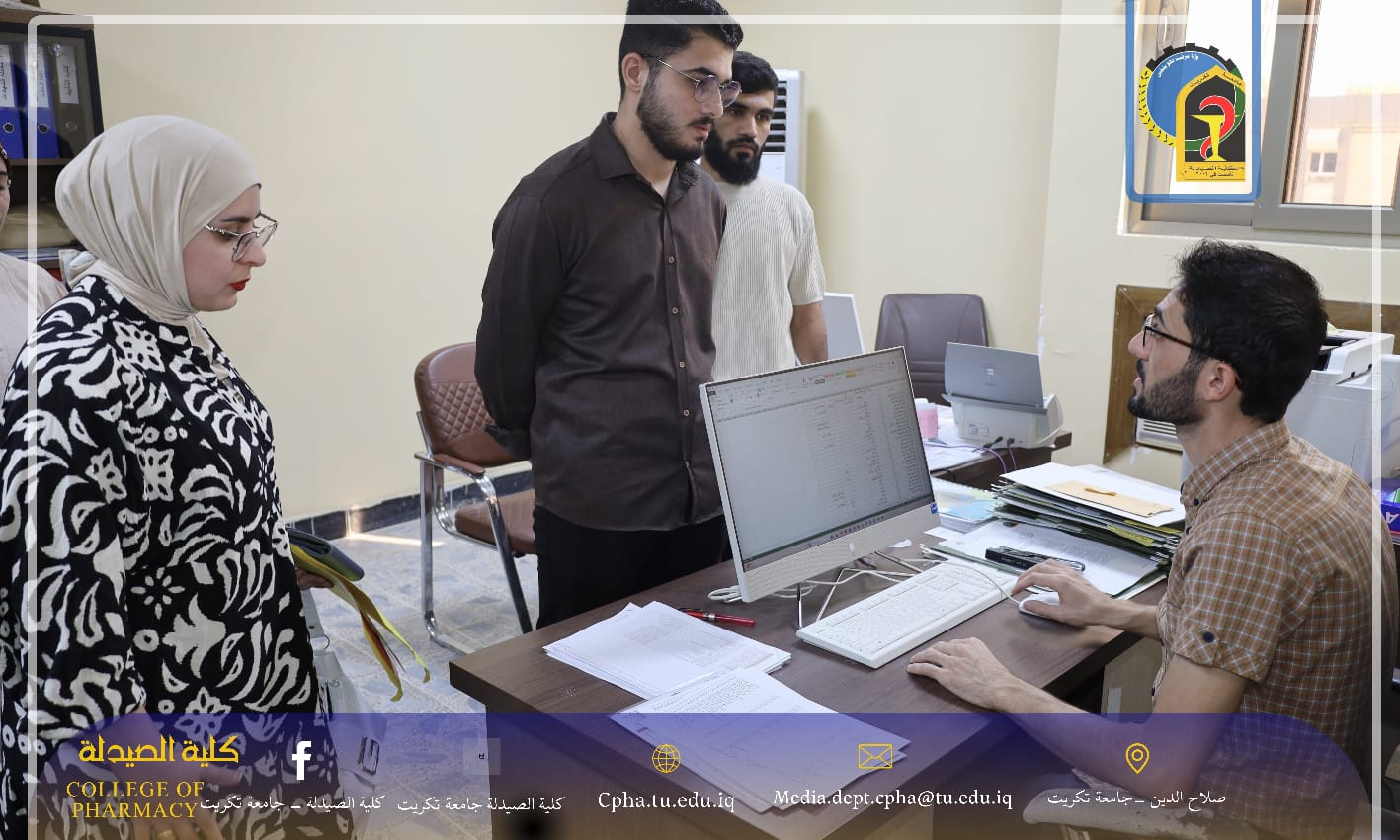 استقبلت كلية الصيدلة – جامعة تكريت عامها الدراسي الجديد 2025–2026 بأجواء علمية مفعمة بالحيوية، حيث أجرى الأستاذ المساعد الدكتور عمر صالح حسن، عميد الكلية، جولة ميدانية رافقه فيها معاون العميد للشؤون الإدارية المدرس الدكتور نهاد حسين أحمد ومعاون العميد للشؤون العلمية الأستاذ المساعد الدكتور عمر حسين أحمد.