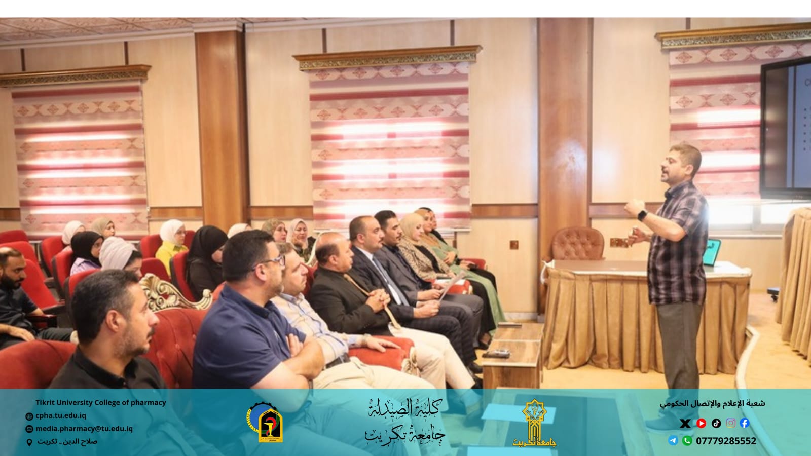 برعاية الأستاذ الدكتور وعد محمود رؤوف رئيس جامعة تكريت، وبإشراف الأستاذ المساعد الدكتور عمر صالح حسن عميد كلية الصيدلة، والأستاذ المساعد الدكتور سياف عبد حسين مدير مركز التعليم المستمر، أقامت كلية الصيدلة بالتعاون مع مركز التعليم المستمر وقسم الشؤون العلمية ندوة حضورية بعنوان: