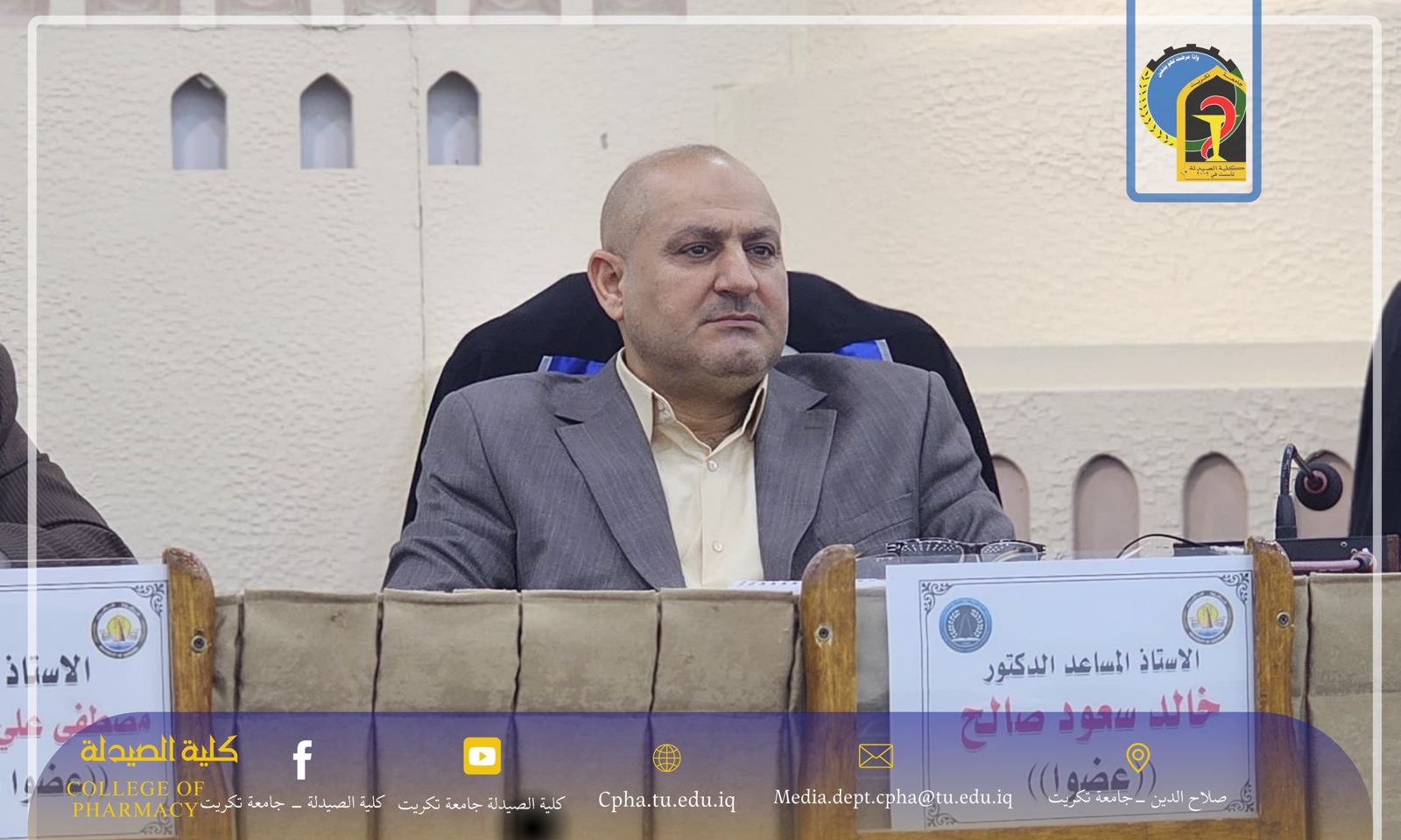 شارك الأستاذ المساعد الدكتور خالد سعود صالح، رئيس فرع الأدوية والسموم في كلية الصيدلة، بعضوية لجنة مناقشة رسالة ماجستير في كلية التربية / قسم علوم الحياة بجامعة سامراء، للباحثة (اية حارث شامل).