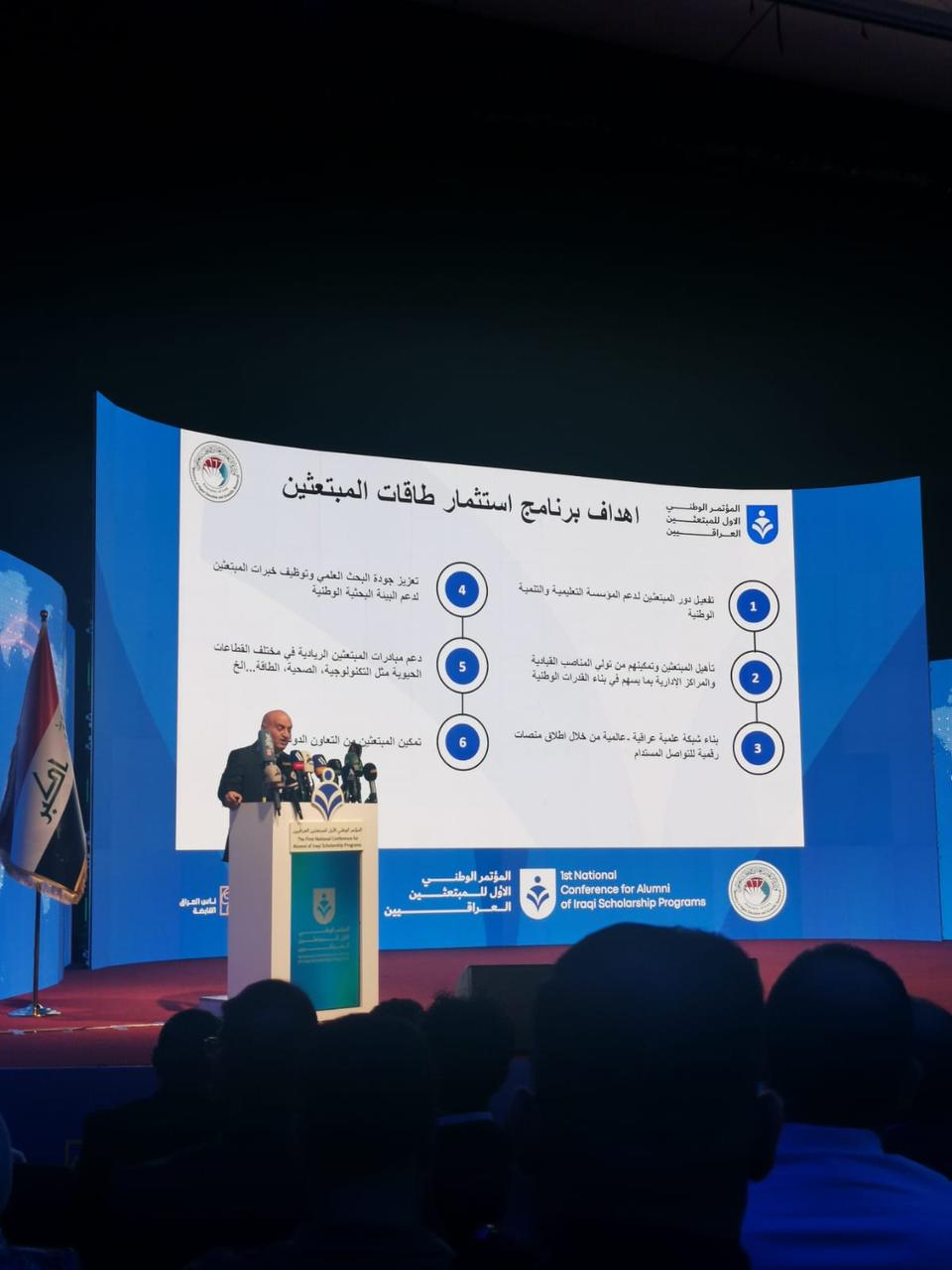 أُقيم في قاعة الحكيم بجامعة بغداد المؤتمر الدولي الأول لاستثمار طاقات المبتعثين، بحضور معالي وزير التعليم العالي والبحث العلمي الدكتور نعيم العبودي، وعدد من عمداء الكليات، ومعاونيهم، ورؤساء الأقسام والفروع، إلى جانب مسؤولي وحدات استثمار طاقات المبتعثين، وحضور لافت للمبتعثين العائدين من دول الابتعاث.