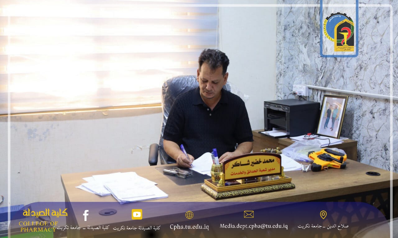 تنفيذا للتوجيهات الادارية الصادرة عن رئاسة الجامعة وعمادة كلية الصيدلة .تواصل الدوام الصيفي في جمع الشعب والوحدات التابعة للكلية حيث يواصل الموظفون والتدريسيون أداء مهامهم الادارية والعلمية بانتظام وعلى اكمل وجه . وتشهد الكلية حظورا متميزا والتزاما واضحا من قبل مسؤؤلي الشعب والوحدات . الامر الذي يسهم في ضمان أستمرارية تقديم الخدمات الاكاديمية والادارية خلال فترة العطلة الصيفية . وتحقيق الانسيابية في أنجاز المعاملات ومتابعة متطلبات العمل المؤسسي