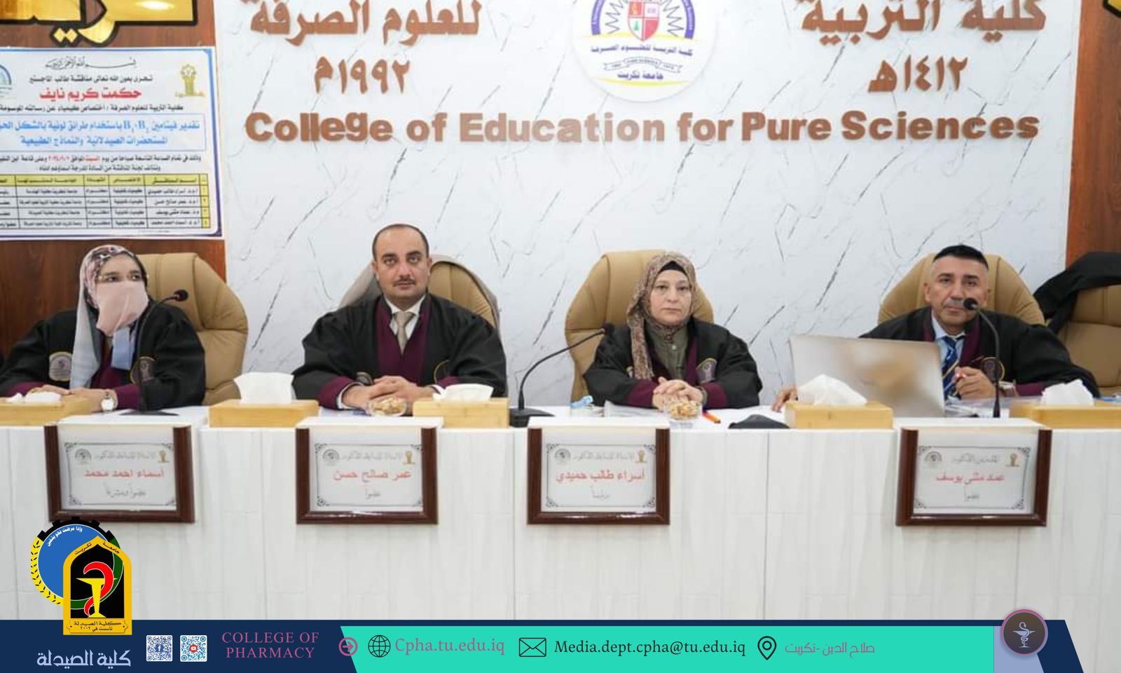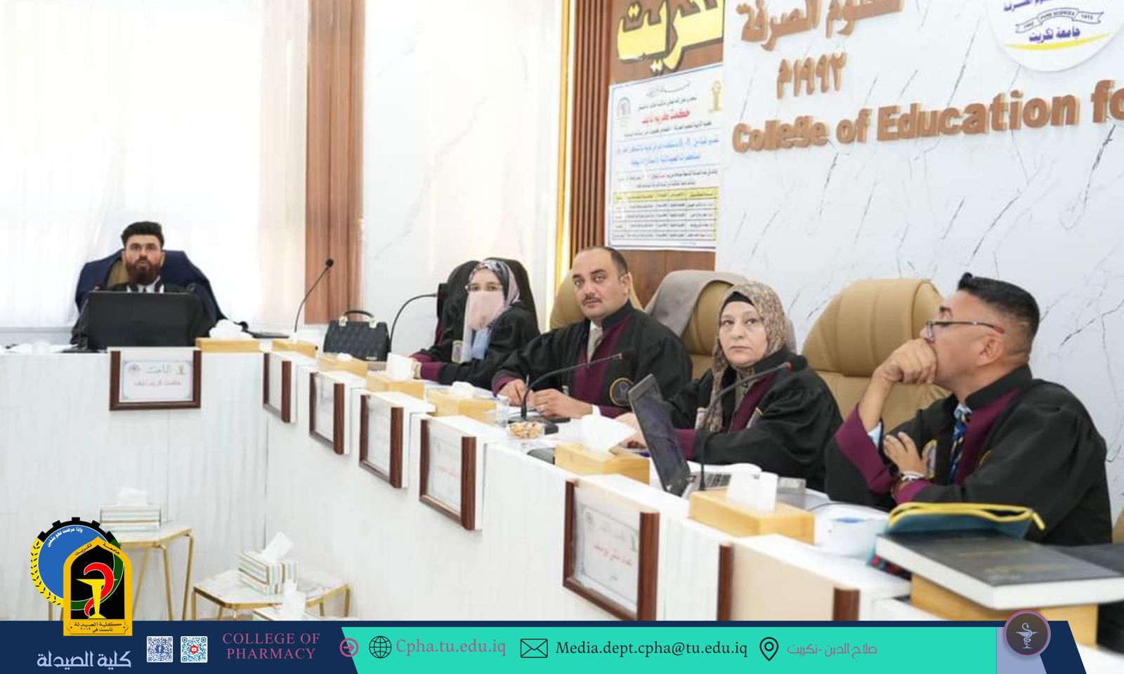 شارك المدرس الدكتور عماد مثنى يوسف / فرع الكيمياء الصيدلانية بعضوية لجنة مناقشة رسالة الماجستير للطالب حكمت كريم نايف من قسم الكيمياء بكلية التربية للعلوم الصرفة في جامعة تكريت ، عن رسالته الموسومة ( تقدير فيتامين B1 ، B2 باستخدام طرائق لونية بالشكل الحر في المستحضرات الصيدلانية والنماذج الطبيعية)