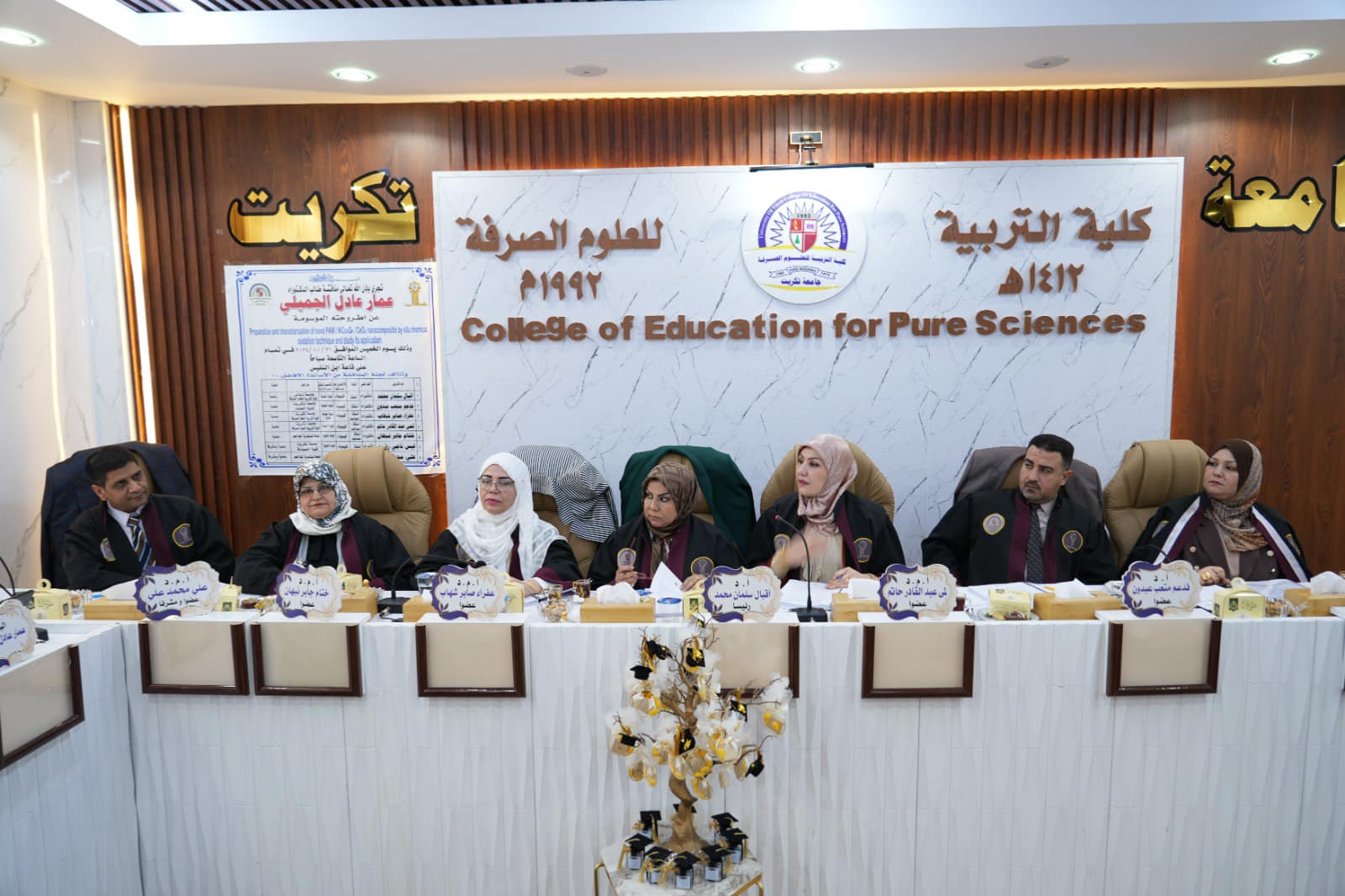 شاركت أ.د. قبس ناجي رشيد / فرع الكيمياء الصيدلانية بمناقشة أطروحة دكتوراه (عضواً ومشرفاً ) في كلية التربية للعلوم الصرفة بجامعة تكريت، وقد حصل الباحث عمار عادل حسين درجة امتياز، مع مرتبة الشرف عن اطروحته الموسومة Preparation and Characterization of NovelPANI / NiCo2O4 / CeO2 Nanocomposite by situ Chemical Oxidation Technique and Study its Application.