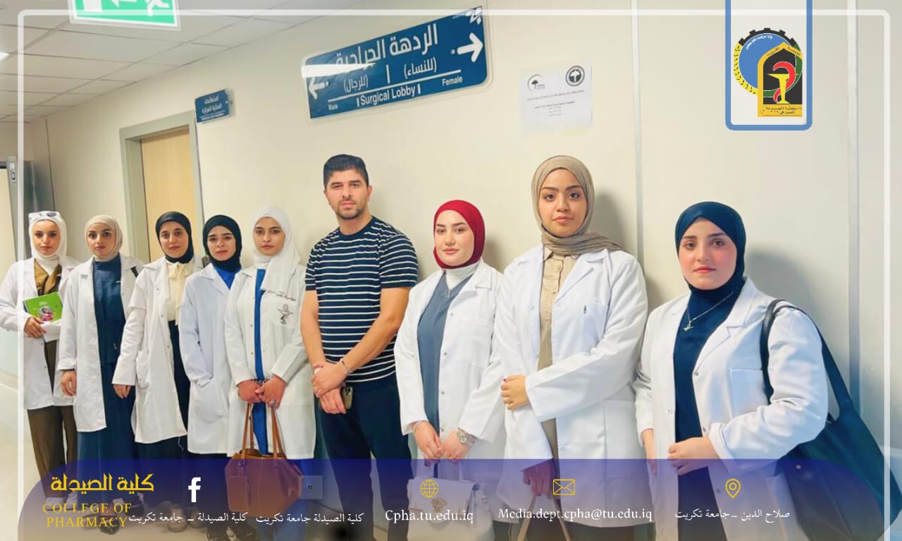 يواصل طلبة المرحلة الخامسة في كلية الصيدلة بجامعة تكريت برنامجهم التدريبي السريري في ردهات مستشفى تكريت التعليمي، ضمن متطلبات الدراسة الأولية في الكلية، بهدف تنمية مهاراتهم العملية وتعزيز خبراتهم في التعامل مع الحالات السريرية المختلفة.