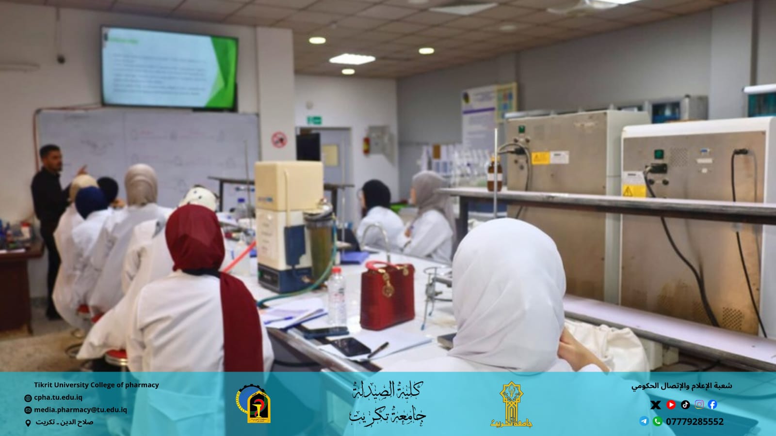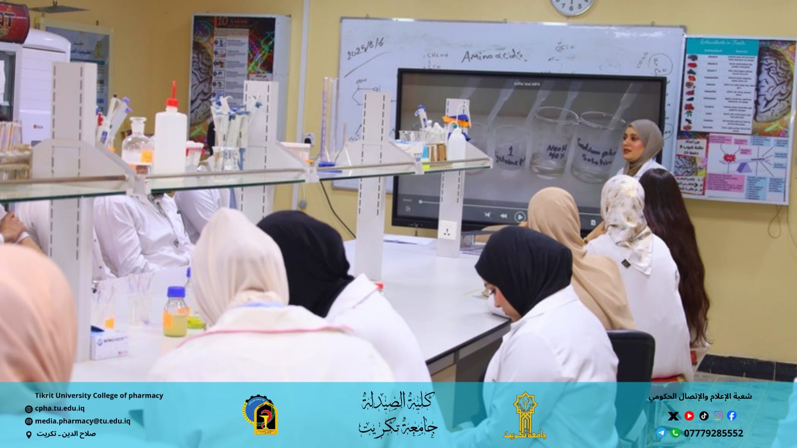 تواصل كلية الصيدلة في جامعة تكريت تنفيذ المحاضرات العملية في مختبراتها العلمية لطلبة المراحل الدراسية المختلفة، ضمن الخطة الدراسية للعام الجامعي 2025–2026، وبإشراف مباشر من الكادر التدريسي المختص.