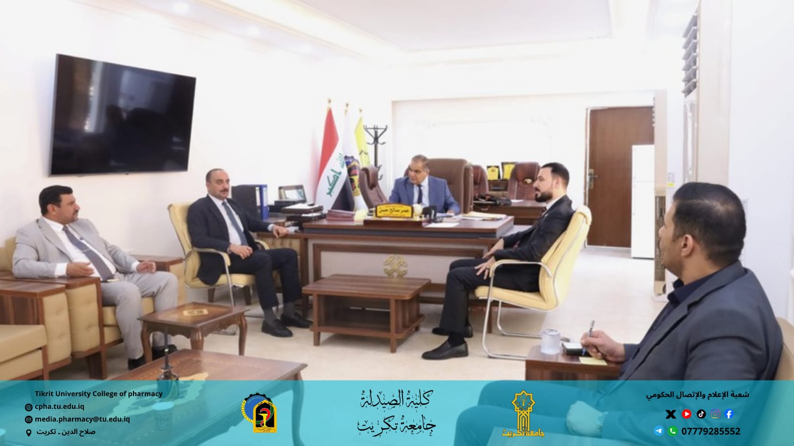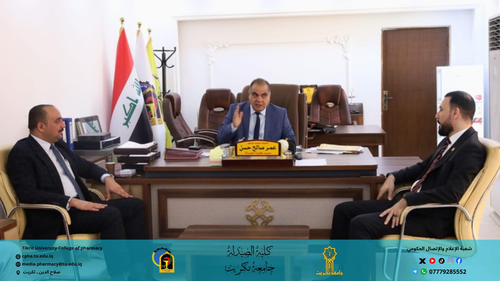 استقبلت كلية الصيدلة في جامعة تكريت السيد مساعد رئيس الجامعة للشؤون العلمية الدكتور حسن حسين اسكندر، وبرفقته الدكتور نمير مدير قسم الشؤون العلمية في رئاسة الجامعة، وذلك في زيارة علمية تهدف إلى الاطلاع على سير العملية التعليمية وآلية التدريس في الكلية، ومتابعة تنفيذ مفردات المناهج الدراسية.