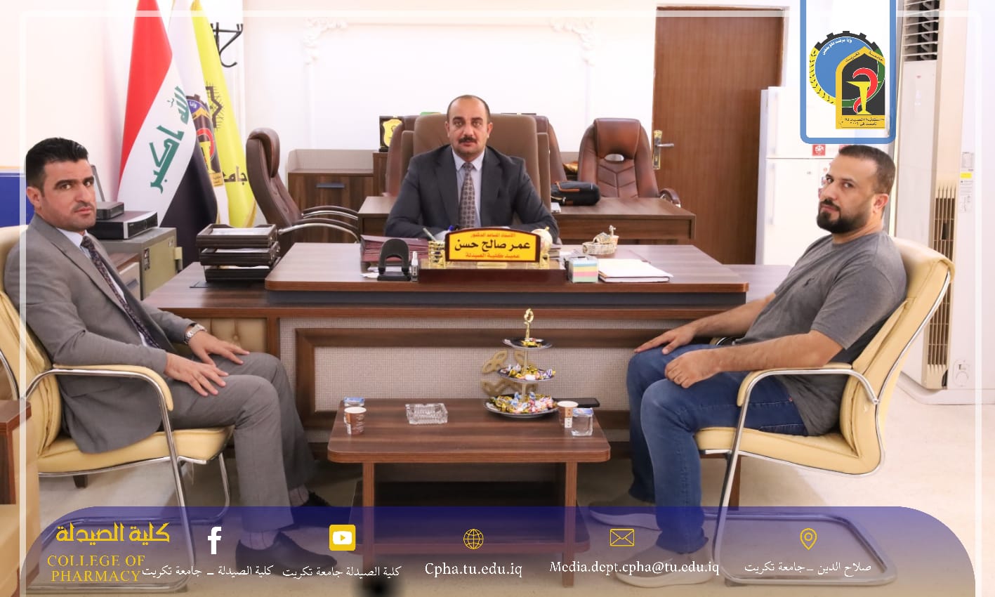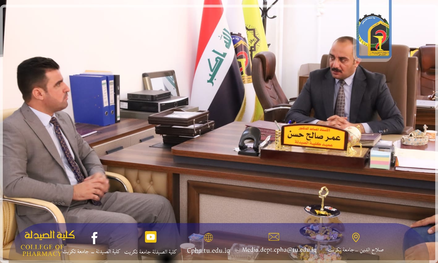 استقبلت كلية الصيدلة في جامعة تكريت السيد مشعان فيصل الجبوري، ممثل برنامج الأمم المتحدة الإنمائي (UNDP) في محافظة صلاح الدين، وكان في استقباله عميد الكلية الأستاذ المساعد الدكتور عمر صالح حسن.