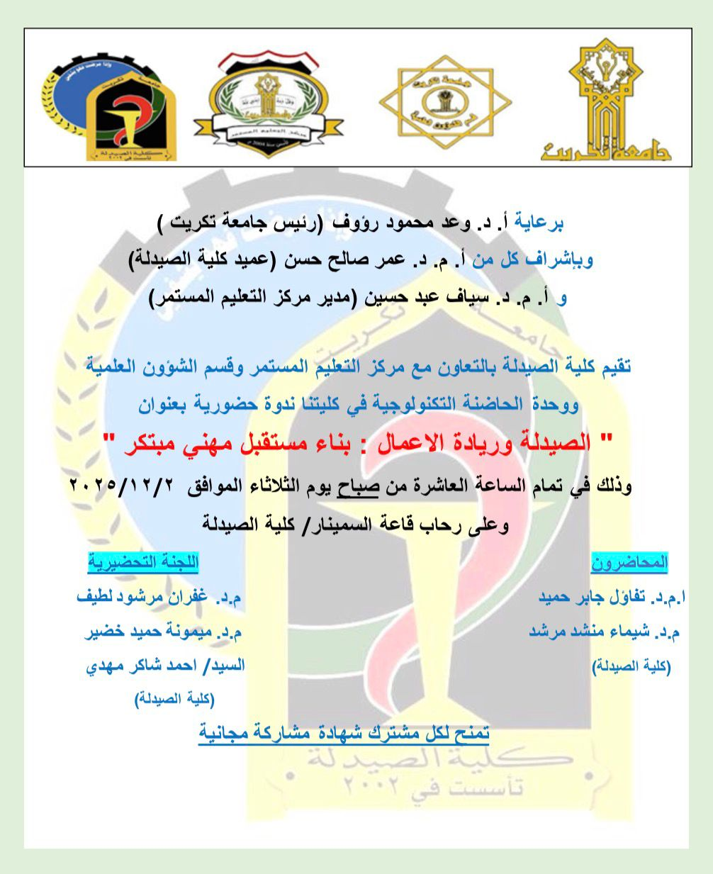 برعاية الأستاذ الدكتور وعد محمود رؤوف رئيس جامعة تكريت، وبإشراف الأستاذ المساعد الدكتور عمر صالح...