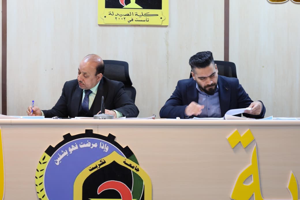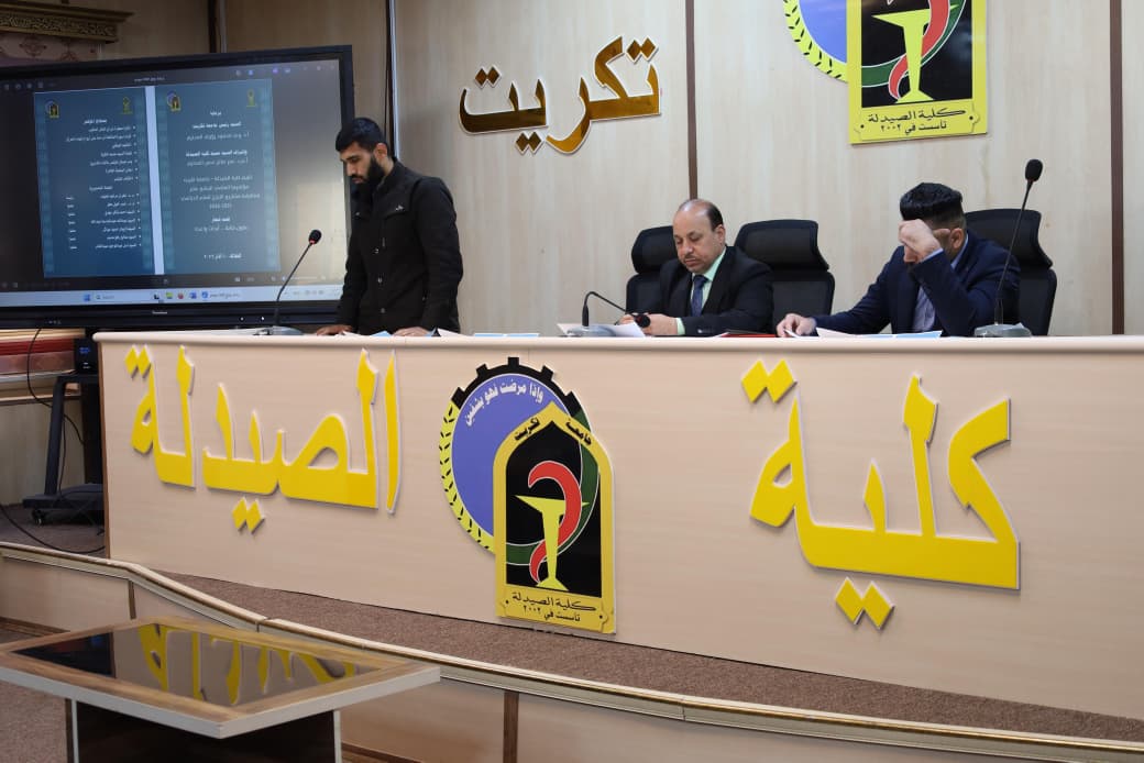 برعاية السيد رئيس جامعة تكريت الأستاذ الدكتور وعد محمود رؤوف المحترم، وبإشراف الأستاذ المساعد الدكتور عمر صالح حسن عميد كلية الصيدلة، أقامت كلية الصيدلة في جامعة تكريت، اليوم الثلاثاء الموافق 2026/3/10، مؤتمرها العلمي السابع عشر لمناقشة مشاريع بحوث التخرج لطلبة المرحلة الخامسة للعام الدراسي 2025–2026، وذلك تحت شعار "عقول شابة… أبحاث واعدة".