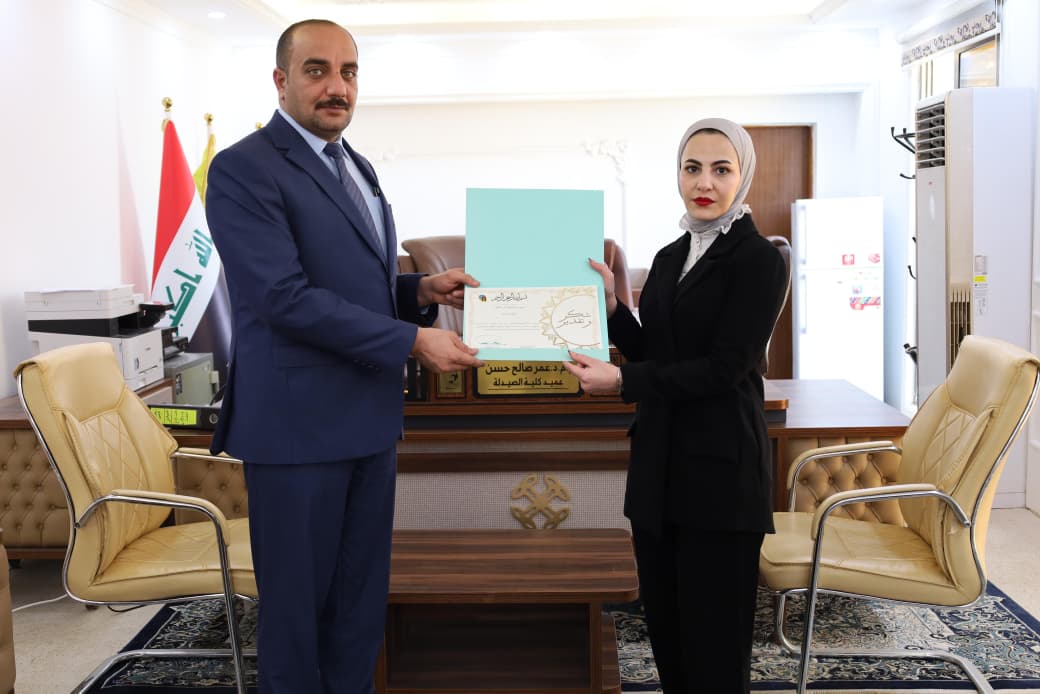 وفي ختام أعمال المؤتمر، كرم عميد كلية الصيدلة الأستاذ المساعد الدكتور عمر صالح حسن الطلبة الذين ناقشوا بحوثهم خلال هذا اليوم، تثميناً لجهودهم العلمية وتشجيعاً لهم على مواصلة مسيرتهم الأكاديمية والبحثية، متمنياً لهم دوام التوفيق والنجاح في خدمة المسيرة العلمية.