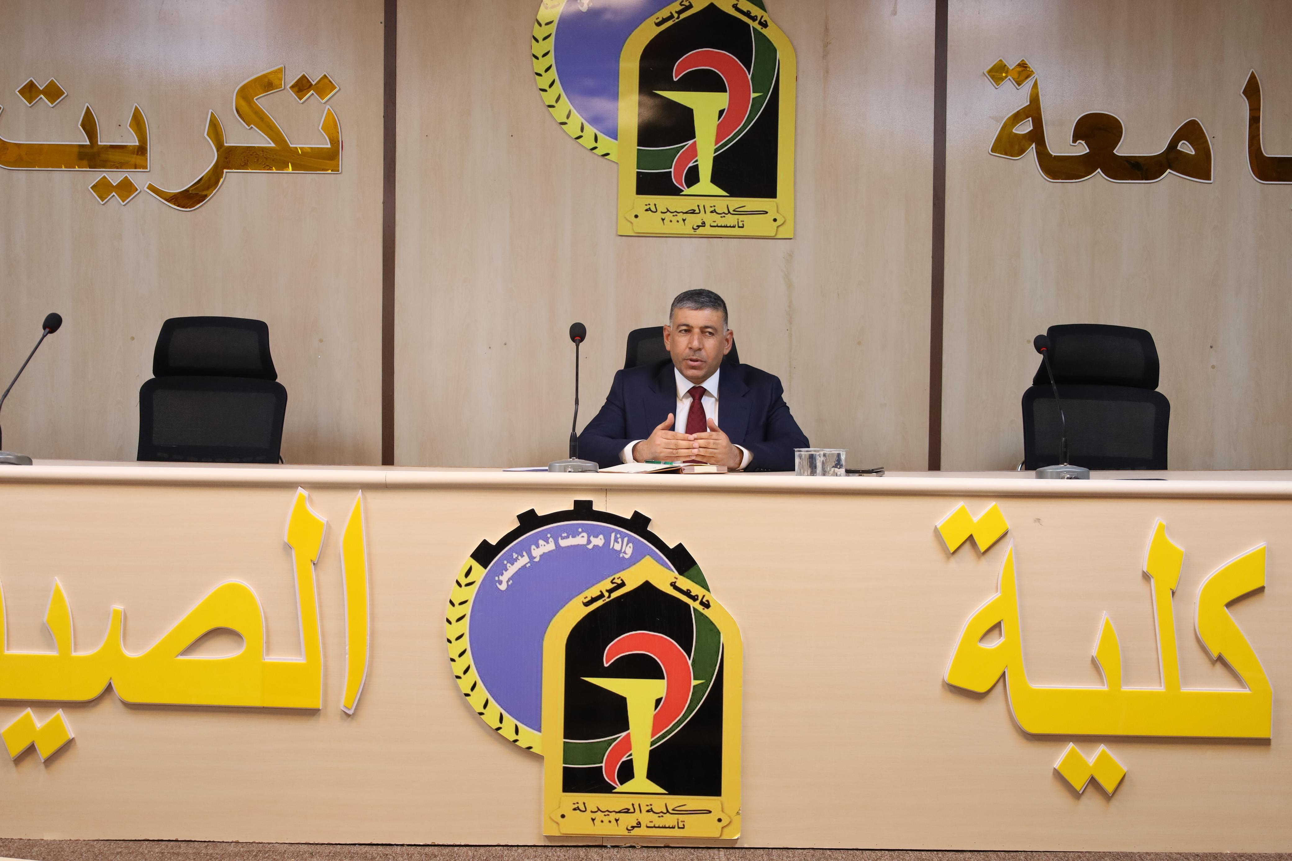 استضافت كلية الصيدلة في جامعة تكريت، صباح يوم الثلاثاء الموافق 9 / 12 / 2025، اجتماع معاوني عمداء الكليات للشؤون الإدارية، برئاسة السيد مساعد رئيس الجامعة للشؤون الإدارية الأستاذ الدكتور حامد محمد صالح، وذلك على قاعة السمنر في الكلية.