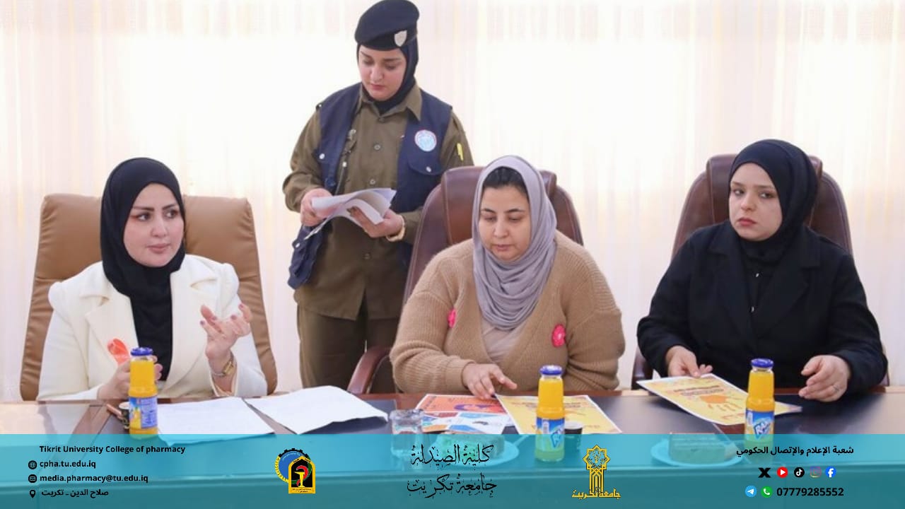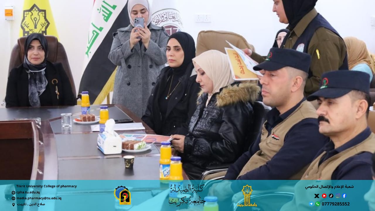 وبرعاية الأستاذ الدكتور وعد محمود رؤوف رئيس جامعة تكريت المحترم، وبإشراف الأستاذ المساعد الدكتور عمر صالح حسن عميد كلية الصيدلة المحترم، والأستاذ المساعد الدكتور سياف عبد حسين مدير مركز التعليم المستمر المحترم.