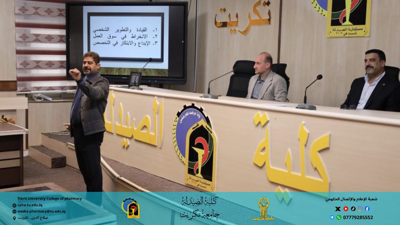 وذلك برعاية الأستاذ الدكتور وعد محمود رؤوف رئيس جامعة تكريت، وبإشراف كل من الأستاذ المساعد الدكتور عمر صالح حسن عميد كلية الصيدلة، والأستاذ المساعد الدكتور سياف عبد حسين مدير مركز التعليم المستمر.