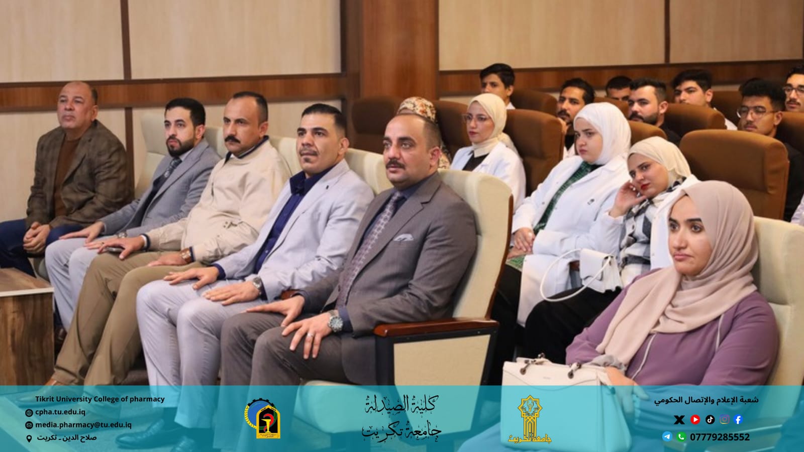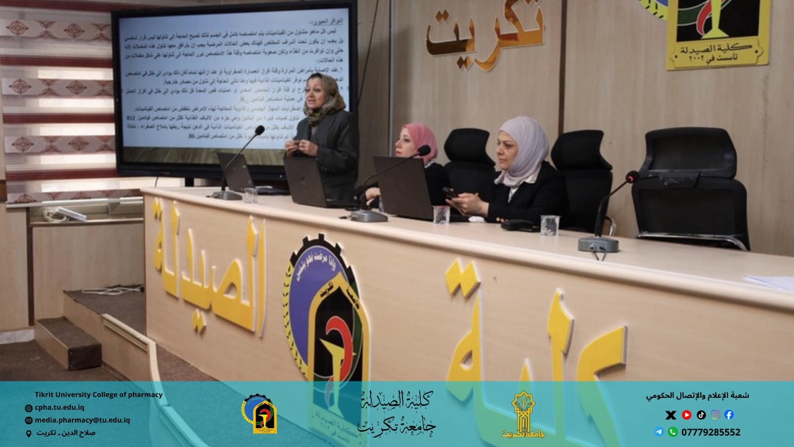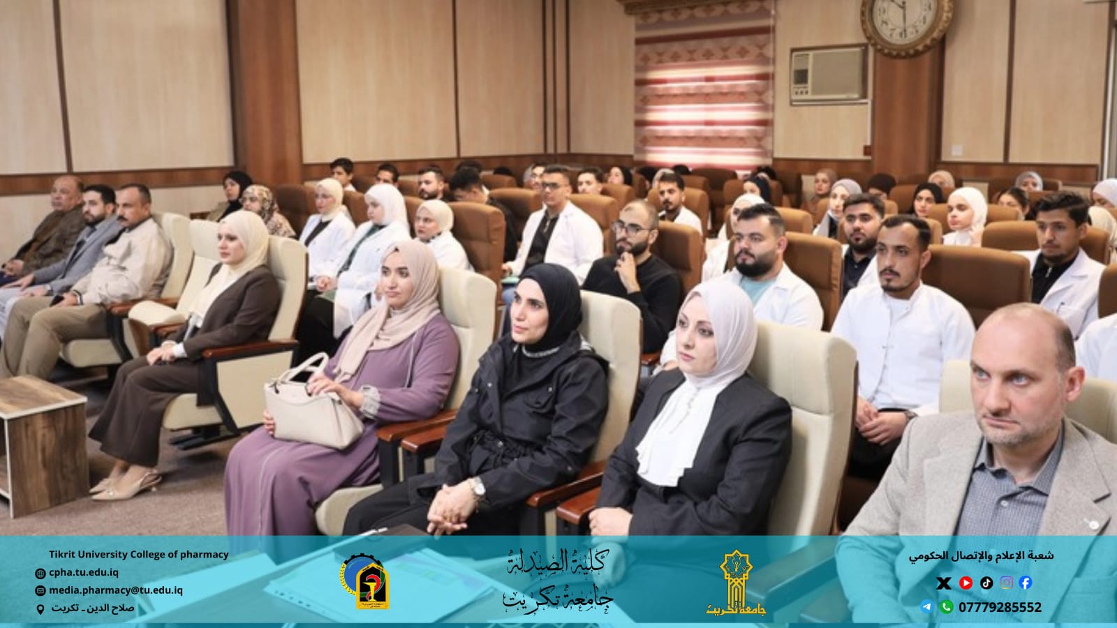 برعاية الأستاذ الدكتور وعد محمود رؤوف رئيس جامعة تكريت، وبإشراف الأستاذ المساعد الدكتور عمر صالح حسن عميد كلية الصيدلة، والأستاذ المساعد الدكتور سياف عبد حسين مدير مركز التعليم المستمر، نظمت كلية الصيدلة بالتعاون مع مركز التعليم المستمر وقسم الشؤون العلمية وقسم علوم الأغذية في كلية الزراعة ندوة حضورية توعوية بعنوان: "التداخل الغذائي بين الممارسة السريرية والتوعية العلمية"، وذلك يوم الأحد الموافق 7 / 12 / 2025 على قاعة السمنر في كلية الصيدلة.