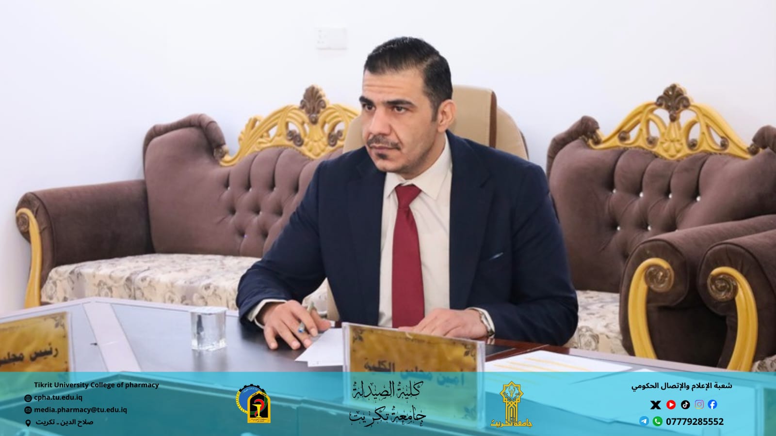 استقبلت كلية الصيدلة اليوم الأربعاء الموافق 3 / 12 / 2025 اللجنة المركزية لتدقيق متطلبات الاعتماد المؤسسي لجامعة تكريت، وذلك بحضور الأستاذ المساعد الدكتور عمر صالح حسن عميد كلية الصيدلة، والأستاذ المساعد الدكتور عمر حسين أحمد معاون العميد للشؤون العلمية.