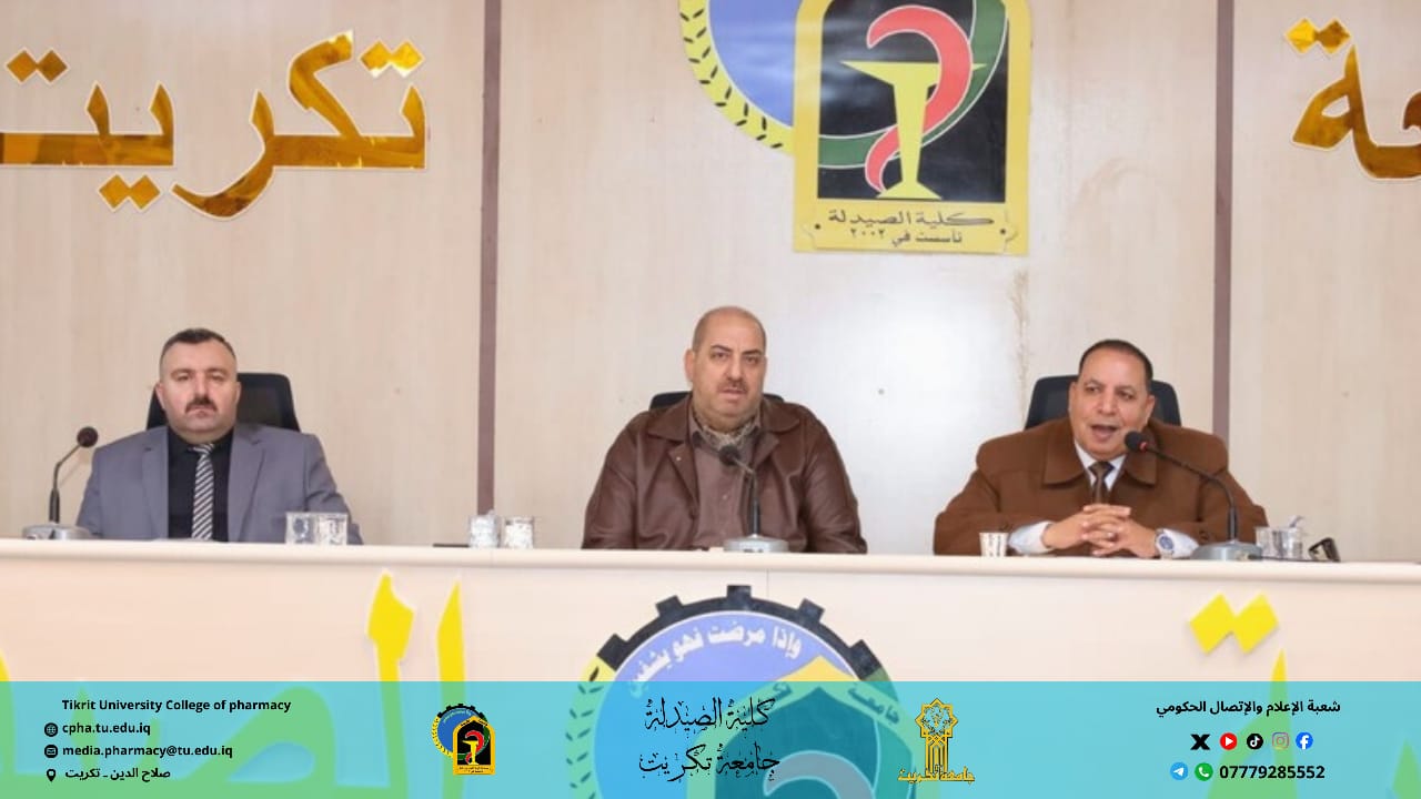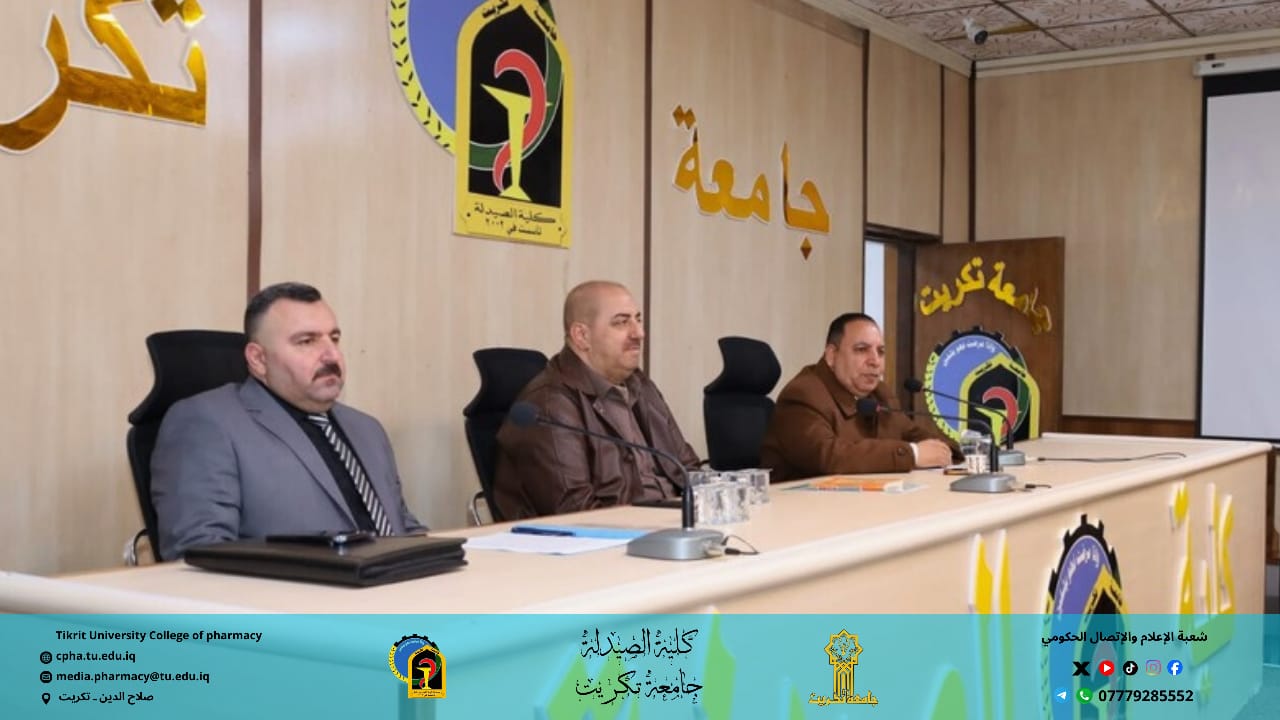 برعاية الأستاذ الدكتور وعد محمود رؤوف رئيس جامعة تكريت، وبإشراف الأستاذ المساعد الدكتور عمر صالح حسن عميد كلية الصيدلة، والأستاذ المساعد الدكتور سياف عبد حسين مدير مركز التعليم المستمر، نظمت كلية الصيدلة ندوة توعوية حضورية بعنوان “مكافحة الإرهاب والتطرف الفكري وتعزيز السلم المجتمعي”.