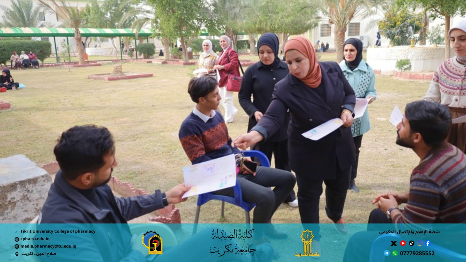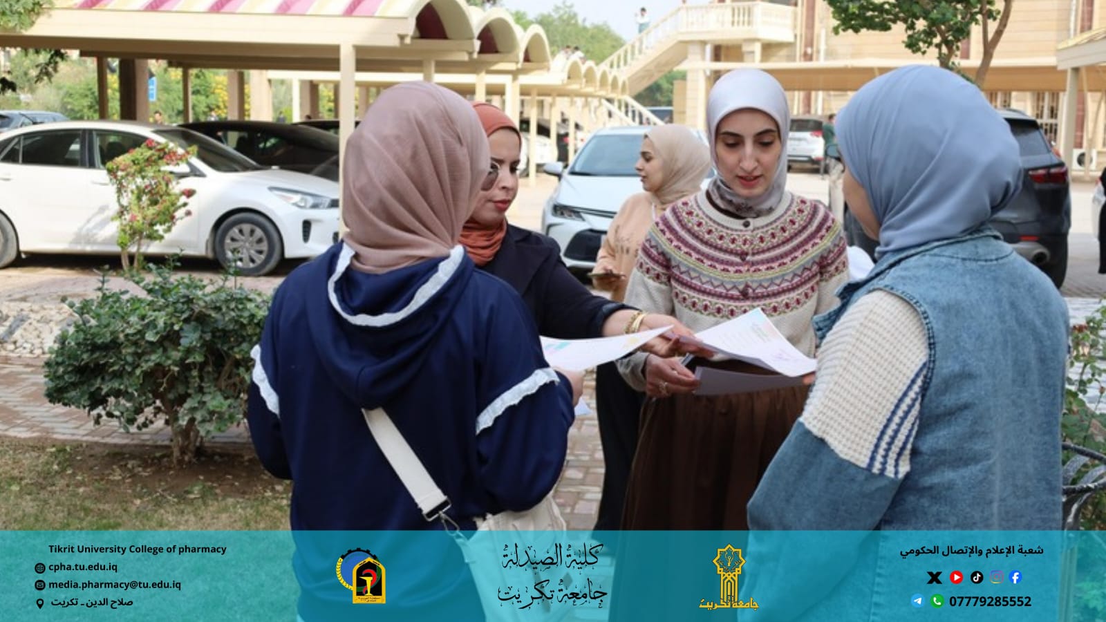 نظمت شعبة الإعلام والاتصال الحكومي، وشعبة الشؤون العلمية، ووحدة شؤون المرأة، ووحدة الإرشاد النفسي والتوجيه التربوي في كلية الصيدلة حملة توعوية وإرشادية شملت الاروقة والقاعات الدراسية والكافتيريا في الكلية، وذلك بهدف تعزيز الوعي بأهمية مناصرة المرأة ضد العنف، وبيان أساليب دعم ضحايا العنف، ونشر الثقافة التي تحمي حقوق المرأة وتصون كرامتها.