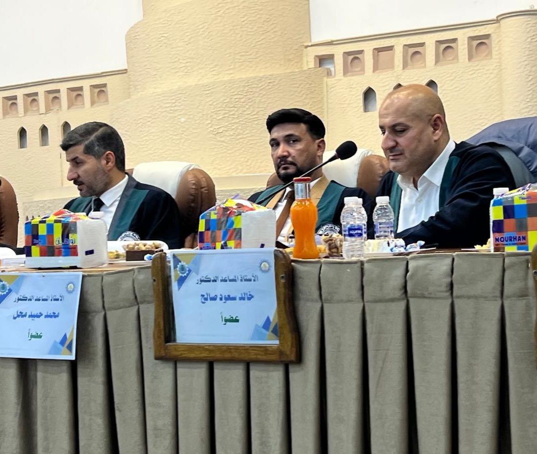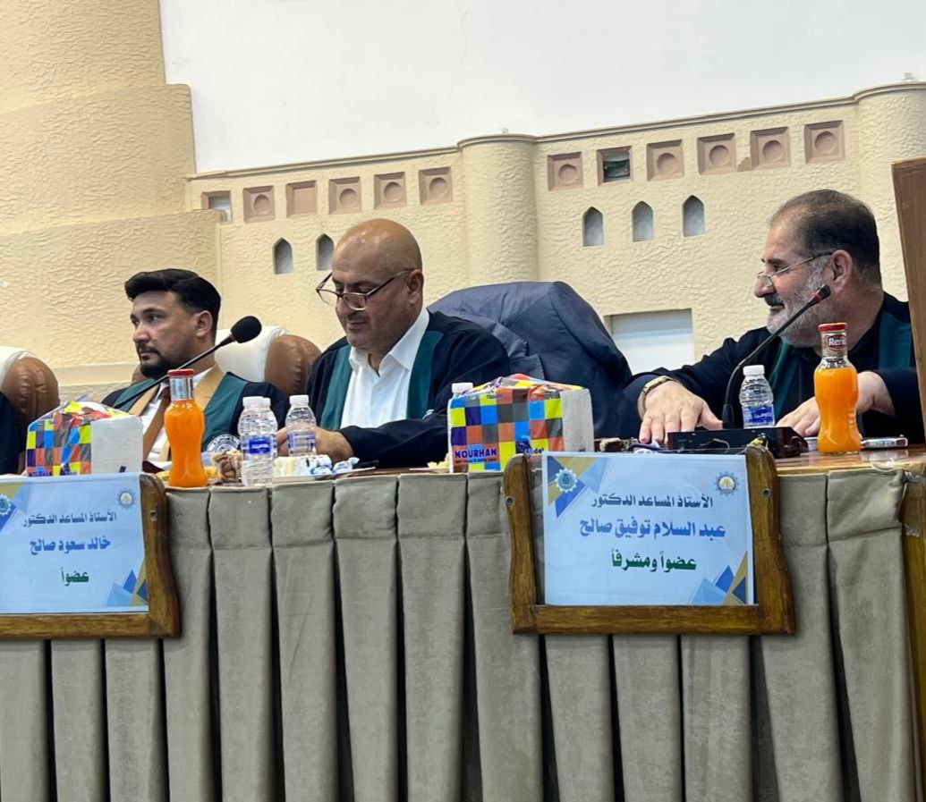 وقد أُجريت المناقشة في تمام الساعة التاسعة من صباح يوم الاثنين الموافق 2025/7/21، على قاعة كلية التربية في جامعة سامراء.