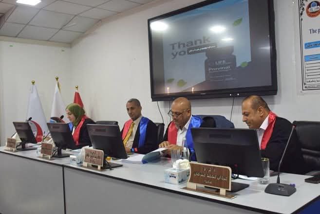 وقد أجريت المناقشة في تمام الساعة التاسعة من صباح يوم الاثنين الموافق 2025/9/1، على قاعة ابن البيطار بكلية الصيدلة / جامعة الموصل.