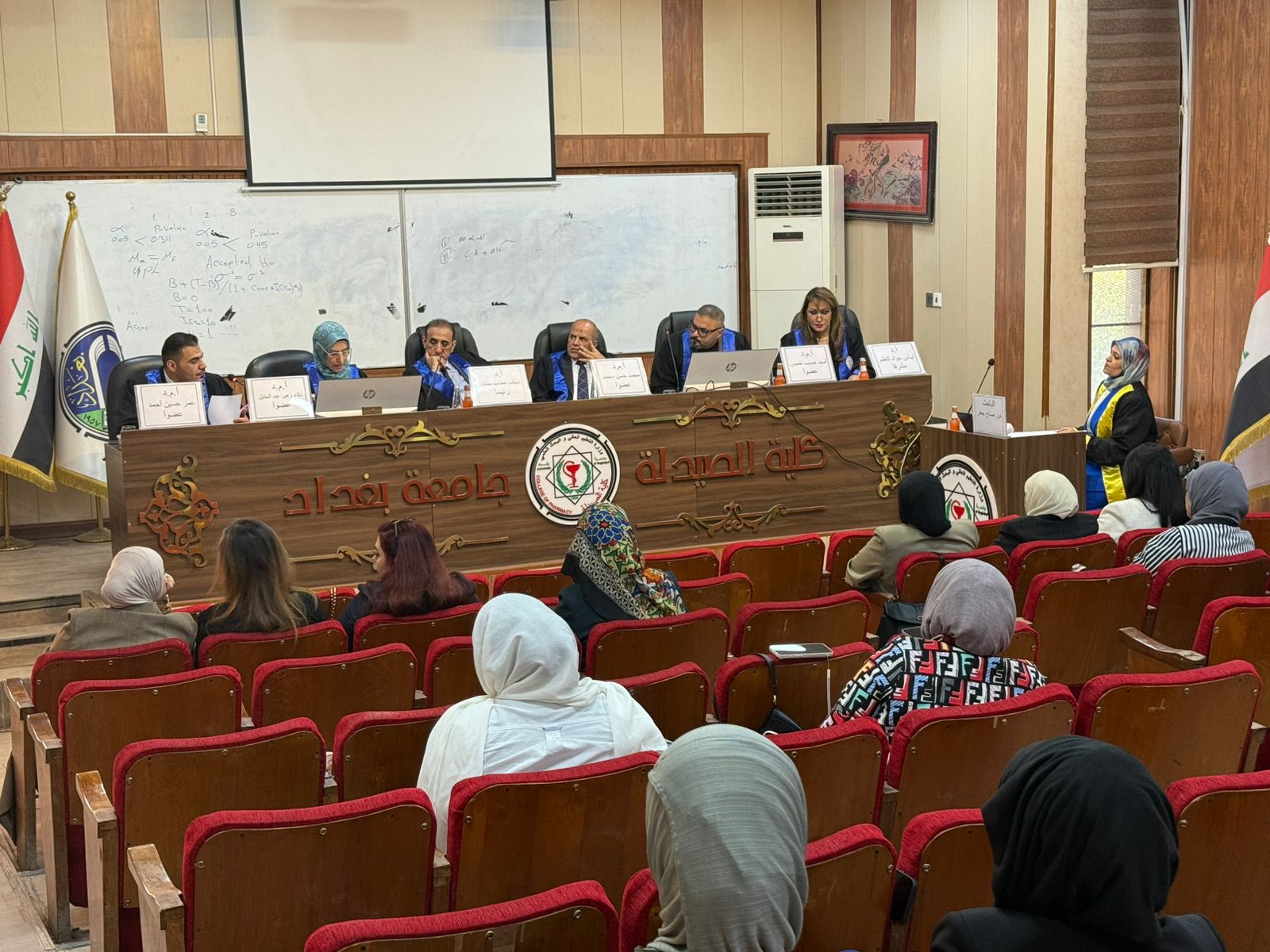وقد أجريت المناقشة في تمام الساعة التاسعة من صباح يوم الأحد الموافق 2025/11/16، على قاعة الأنطاكي في كلية الصيدلة جامعة بغداد.