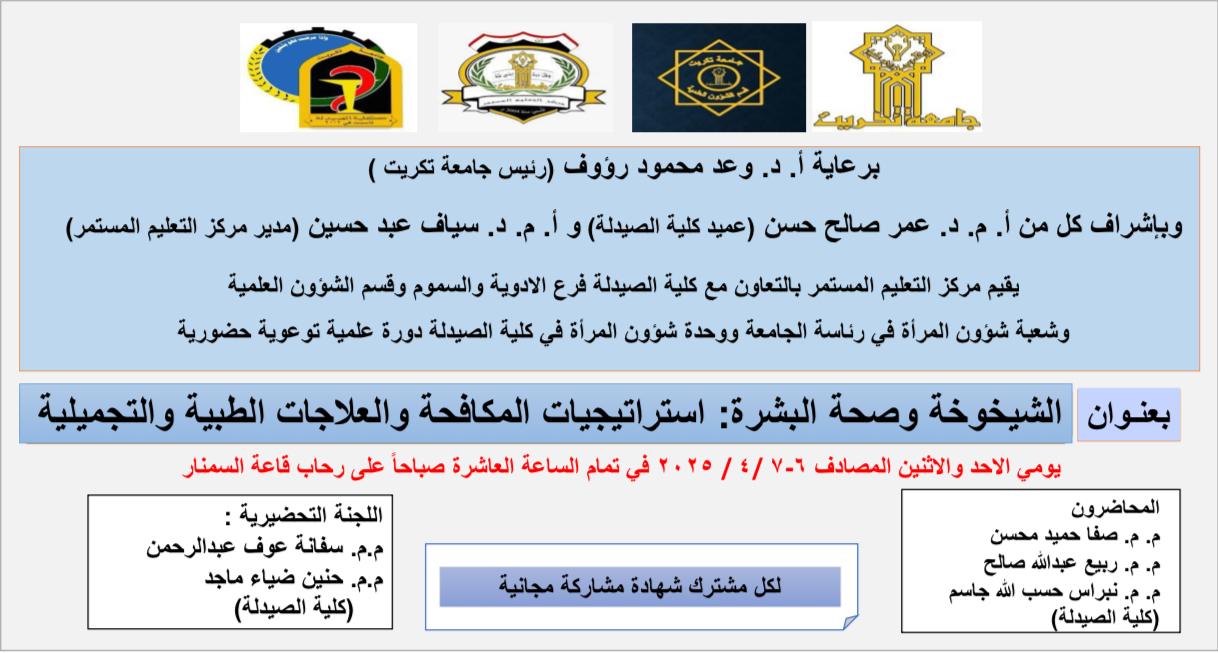 عنوانها "الشيخوخة وصحة البشرة : استراتيجيات المكافحة والعلاجات الطبية والتجميلية"