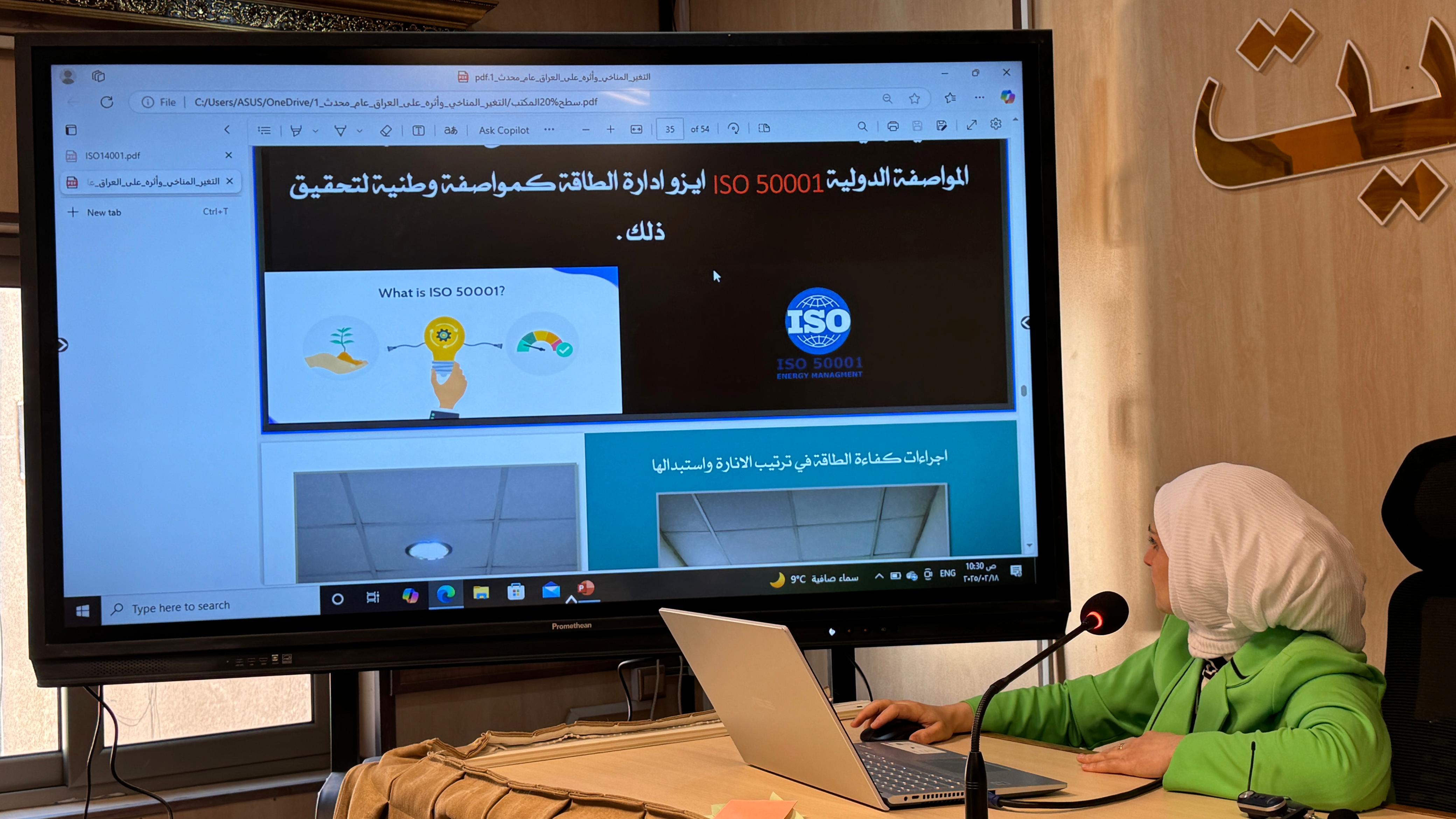 اقيمت على قاعة السيمنار في كلية الصيدلة محاضرة علمية بعنوان : التنمية المستدامة في مجال ادارة البيئة ISO14001 وادارة الطاقة ISO5001 قدمتها مسؤولة وحدة الجودة في شعبة ضمان الجودة المدرس المساعد لبنى وليد محمد