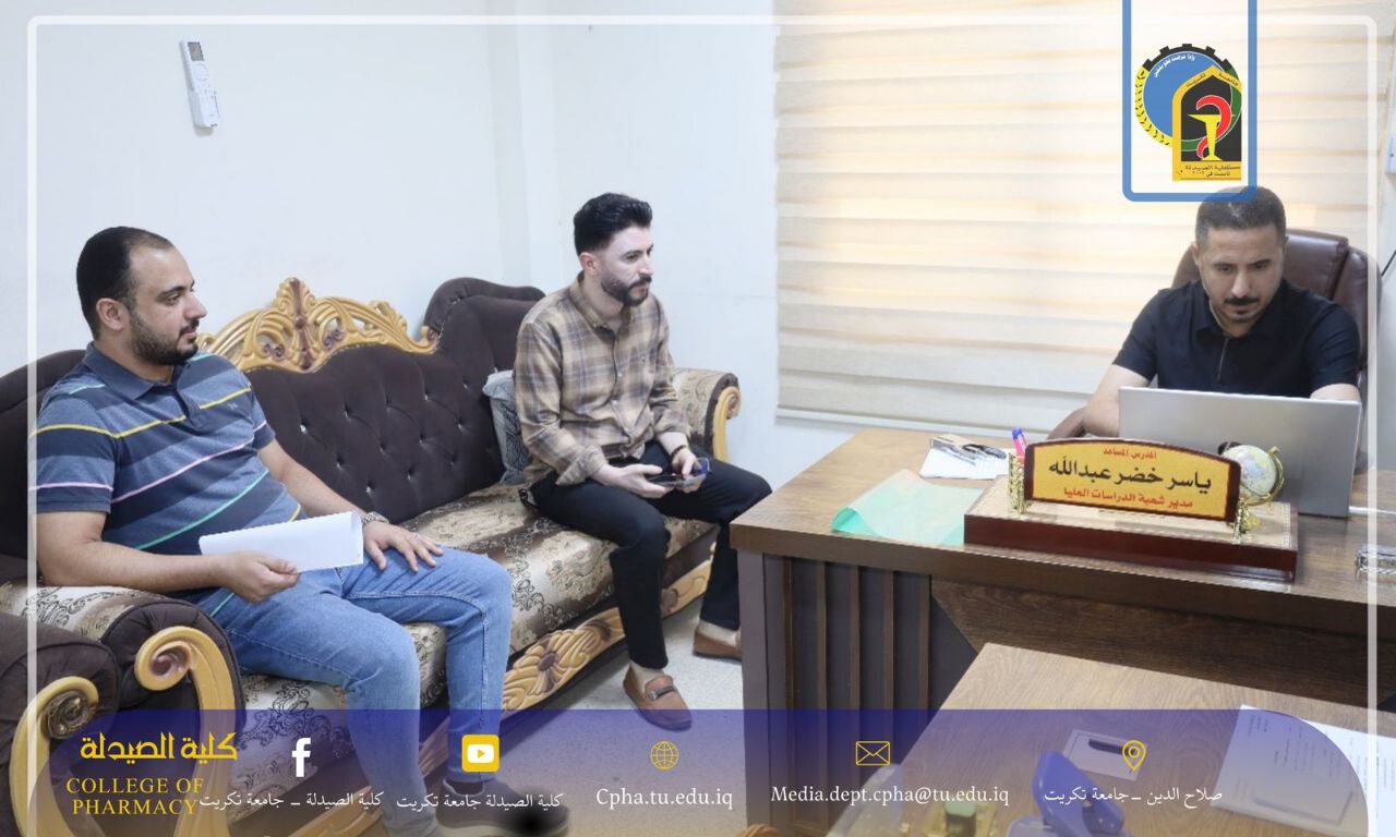 تُعلن شعبة الدراسات العليا في كلية الصيدلة – جامعة تكريت عن استمرار استقبال المتقدمين لغرض المطابقة الورقية وتصويب البيانات، وذلك ضمن المدة الزمنية المحددة من قبل وزارة التعليم العالي والبحث العلمي، حيث يستمر العمل لغاية يوم السبت الموافق 22/6/2025، وفقًا للتوقيتات الوزارية المعتمدة.