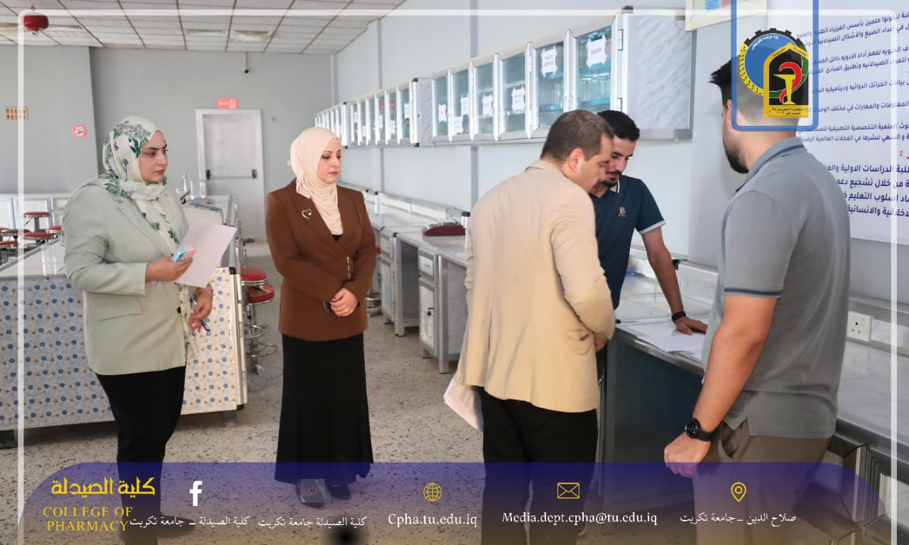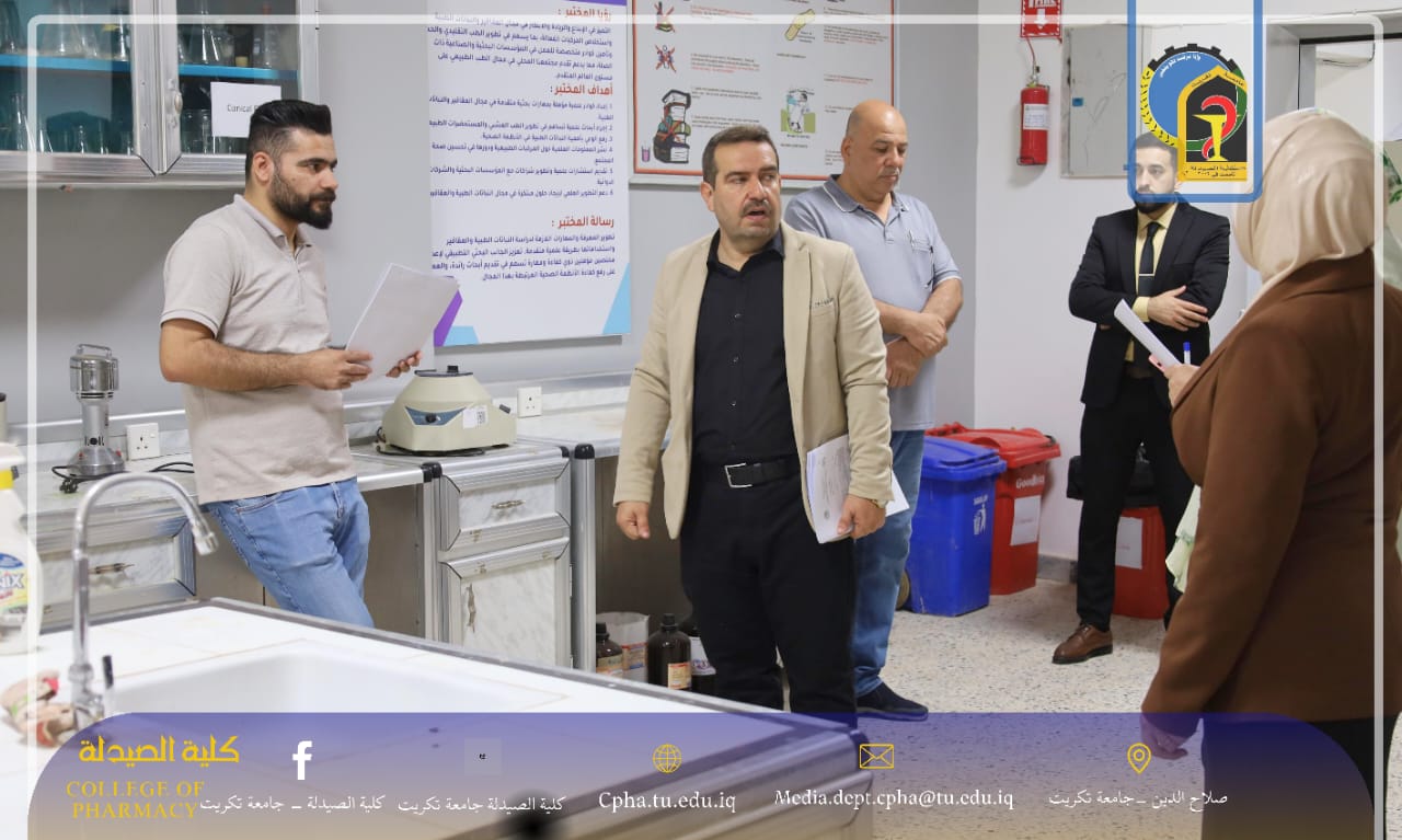 بتكليف من عمادة كلية الصيدلة – جامعة تكريت، أجرت لجنة مختصة جولة تفقدية شاملة في جميع مختبرات الكلية، وذلك بهدف الاطلاع على جاهزيتها من مختلف الجوانب، استعداداً للتقديم على الاعتمادية الأكاديمية.