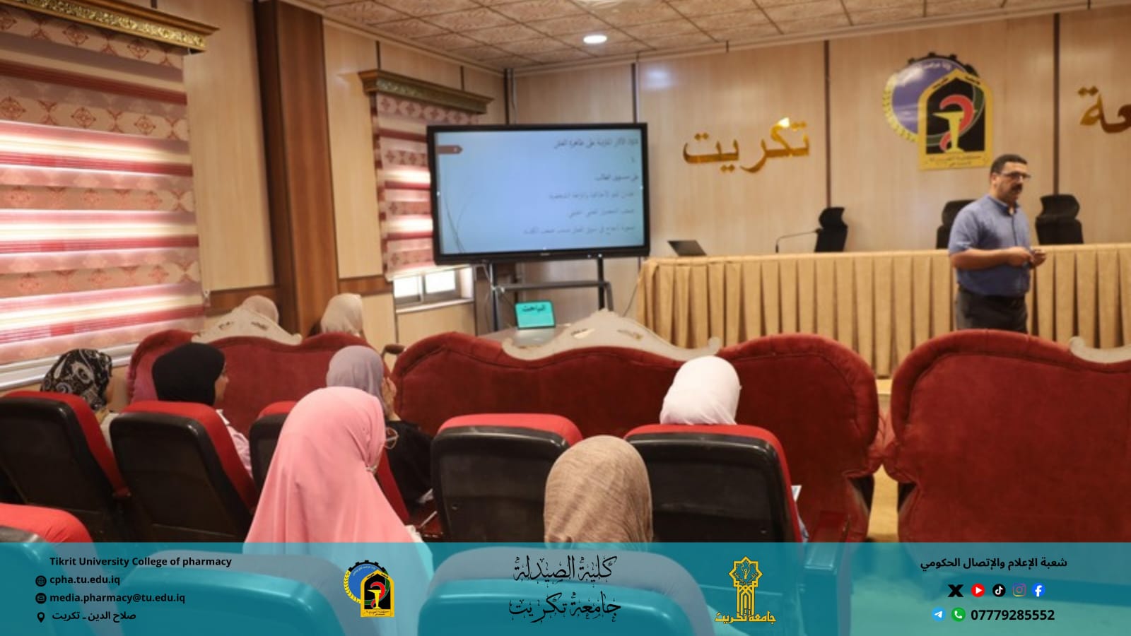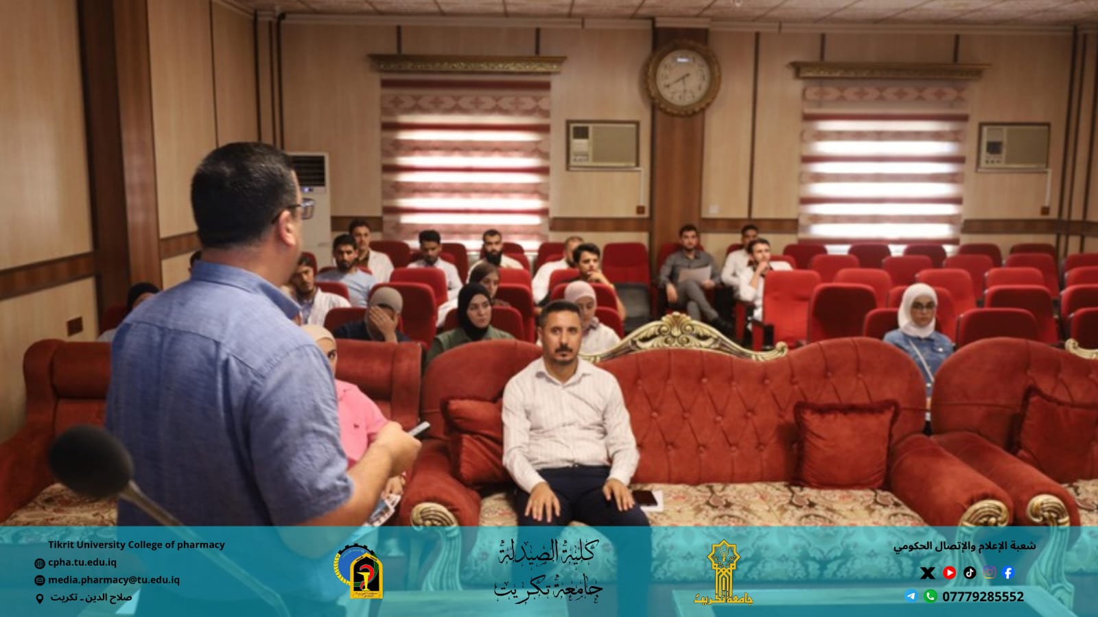 وذلك يوم الأربعاء الموافق 22 / 10 / 2025 على قاعة السمنار في كلية الصيدلة.